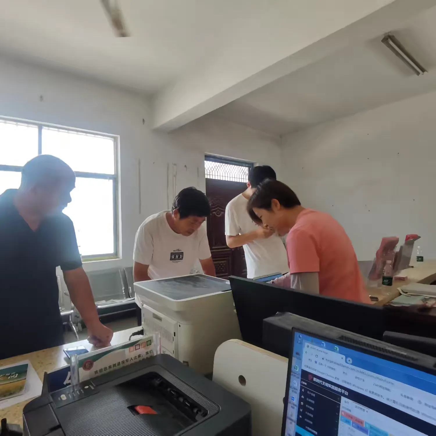 村民们认真的核查自己的农业保险相关信息。