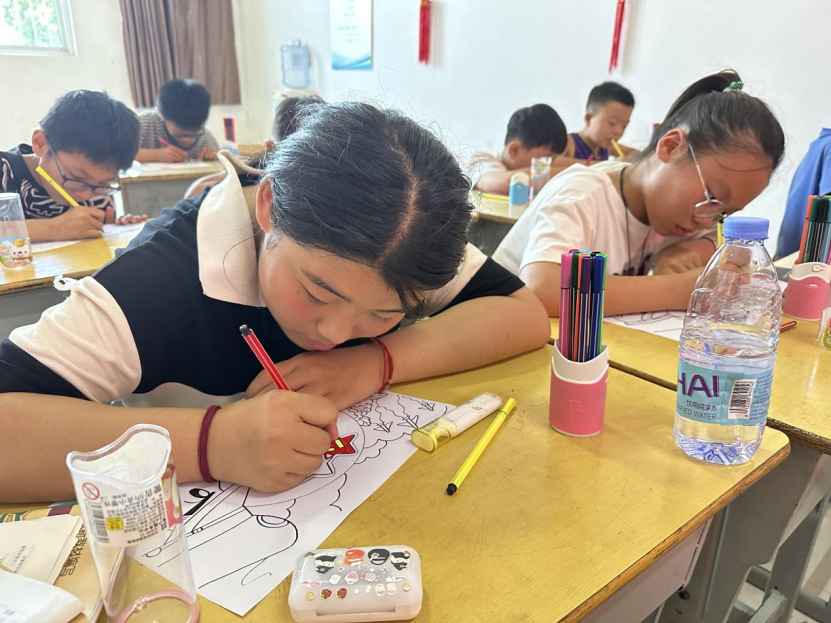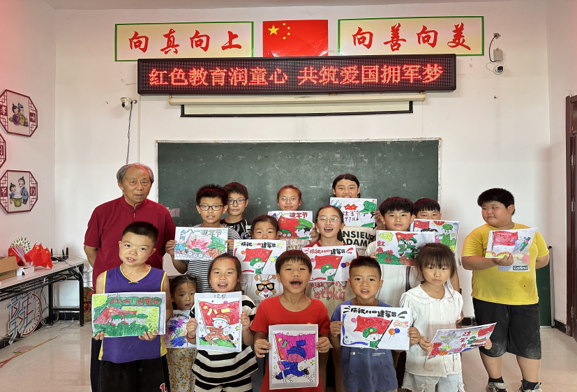 活动开始,志愿者从中国共产党的诞生讲起,详细讲解了党在革命、建设、改革各个历史时期的奋斗历程和辉煌成就,加深了青少年对党的认识和对革命历史的了解,激发了他们的爱国情感和民族自豪感。在互动阶段,有的孩子们讲述了红军长征途中的感人故事,有的介绍了抗日英雄的光辉事迹。这些故事让孩子们更加直观地感受到了革命先烈的伟大精神,他们通过绘画的形式表达对军人的无限崇敬,让爱国主义种子在这些青少年们的心中生根发芽。 一幅幅色彩鲜艳、充满童真的画作,展现了他们对军人的崇敬和对祖国的热爱。