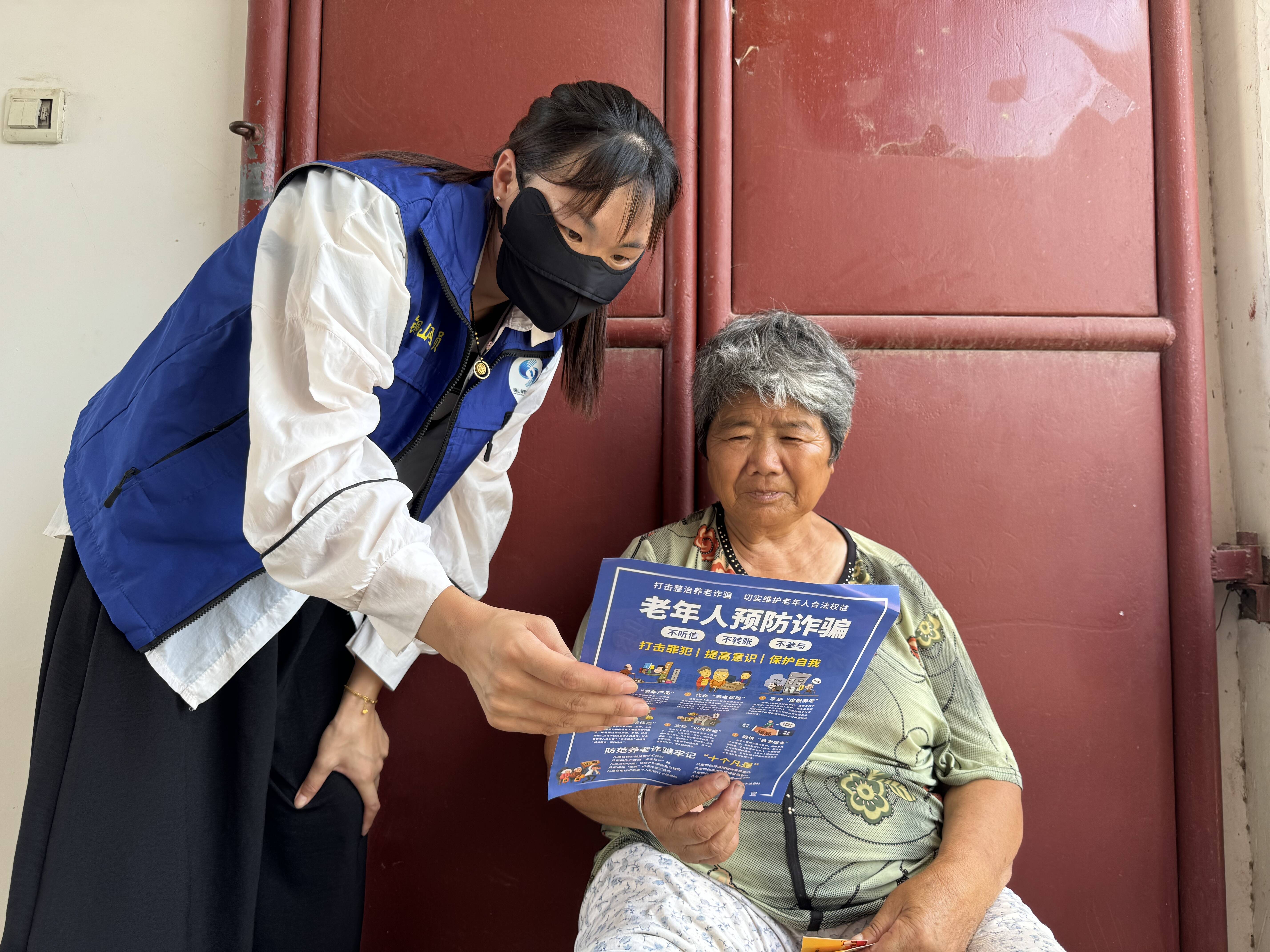 网格员和志愿者们来到王堂村老年活动中心等老年人常去的地方,向老人发放防诈骗宣传单。通过讲解常见诈骗手段以及近期涉及诈骗的典型案例,志愿者们对老年人进行防诈骗科普宣传,普及反诈防骗知识,就电信诈骗的主要类型和防范对策对老人进行答疑解惑。并提醒老人们,在日常生活中不轻易透露个人信息,不轻信来历不明的电话和短信,不随意点击手机链接,不向陌生人汇款、转账,在日常生活中保持警觉,一旦自己或家人遇到被骗情况要第一时间向公安机关报案,引导老人树立安全思维,提高法治意识。