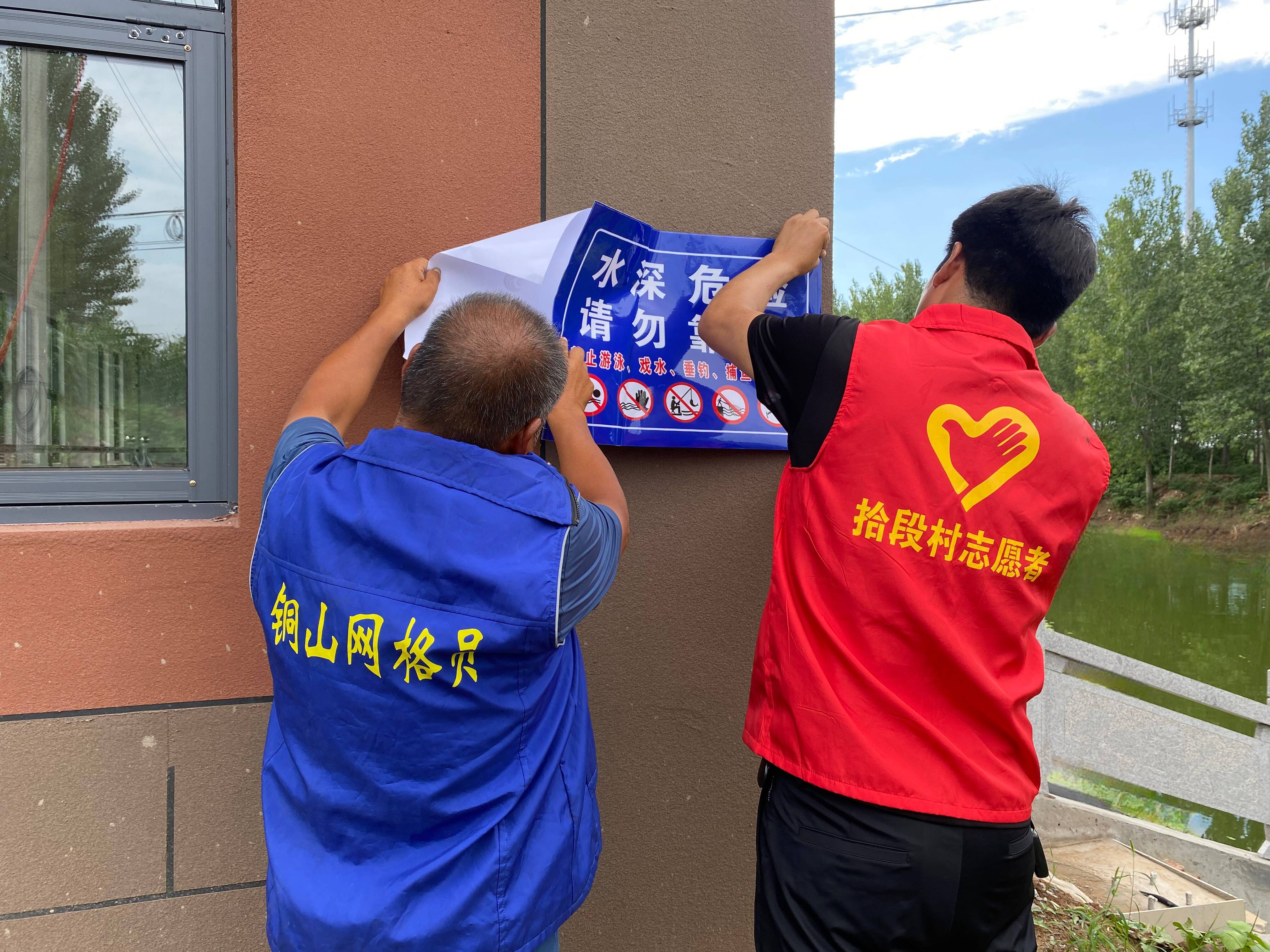 拾段村志愿者和网格员们在重点水域显著位置张贴警示标志,并走上街头,向广大群众宣传讲解预防溺水的重要性。通过鲜活的事例、惨痛的教育警示让大家进一步增强安全第一、生命至上意识,谨记“防”字当头,远离危险,从源头上预防溺水事故的发生。