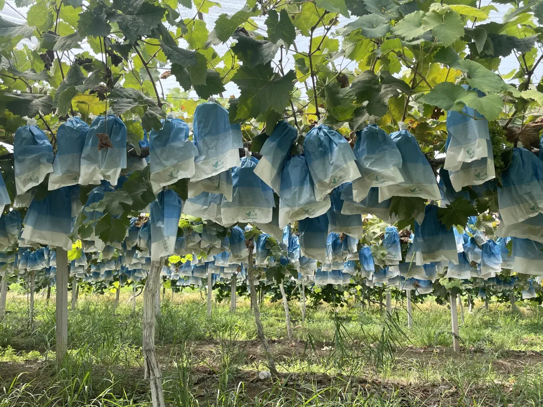 肖全一的“阳光玫瑰”葡萄采用绿色、无公害的方式种植,每串葡萄都被专用套袋保护起来,有效防止了虫害危害果实,保证了葡萄颜色亮丽、外形美观。