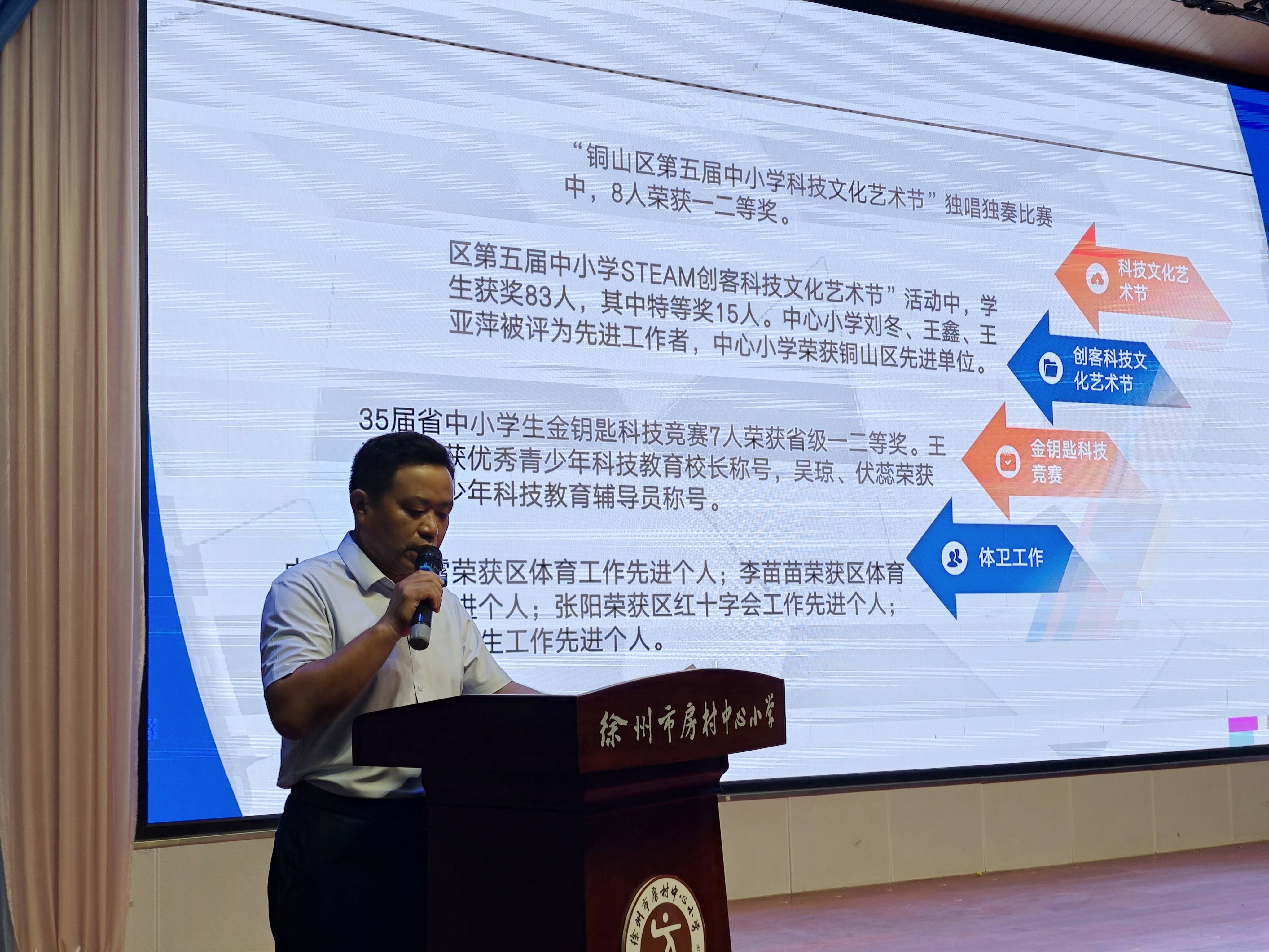 随后,中心校沙朝永校长对上学年的工作进行了全面回顾。他的总结生动具体,让大家清晰地看到了过去一年学校在教育教学、校园文化建设等方面取得的丰硕成果,每一项成绩都凝聚着老师们的汗水与智慧。