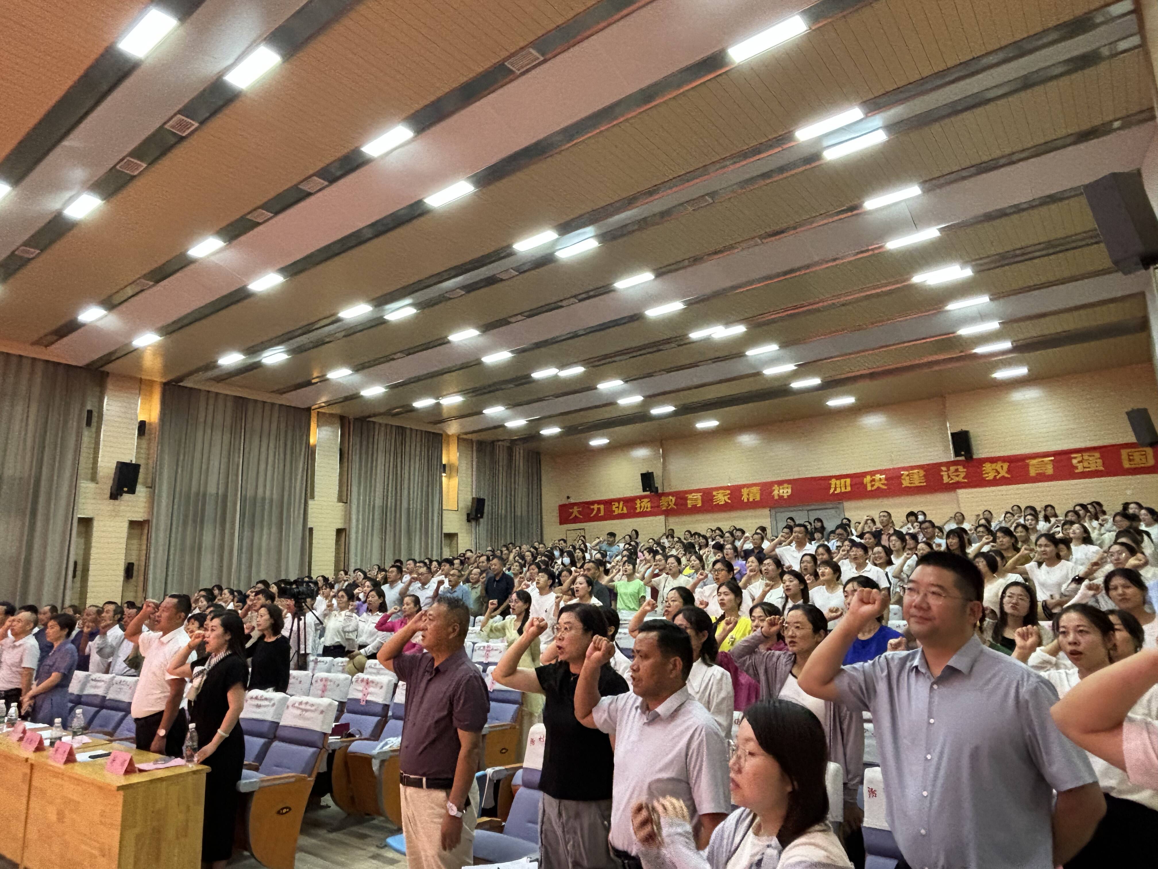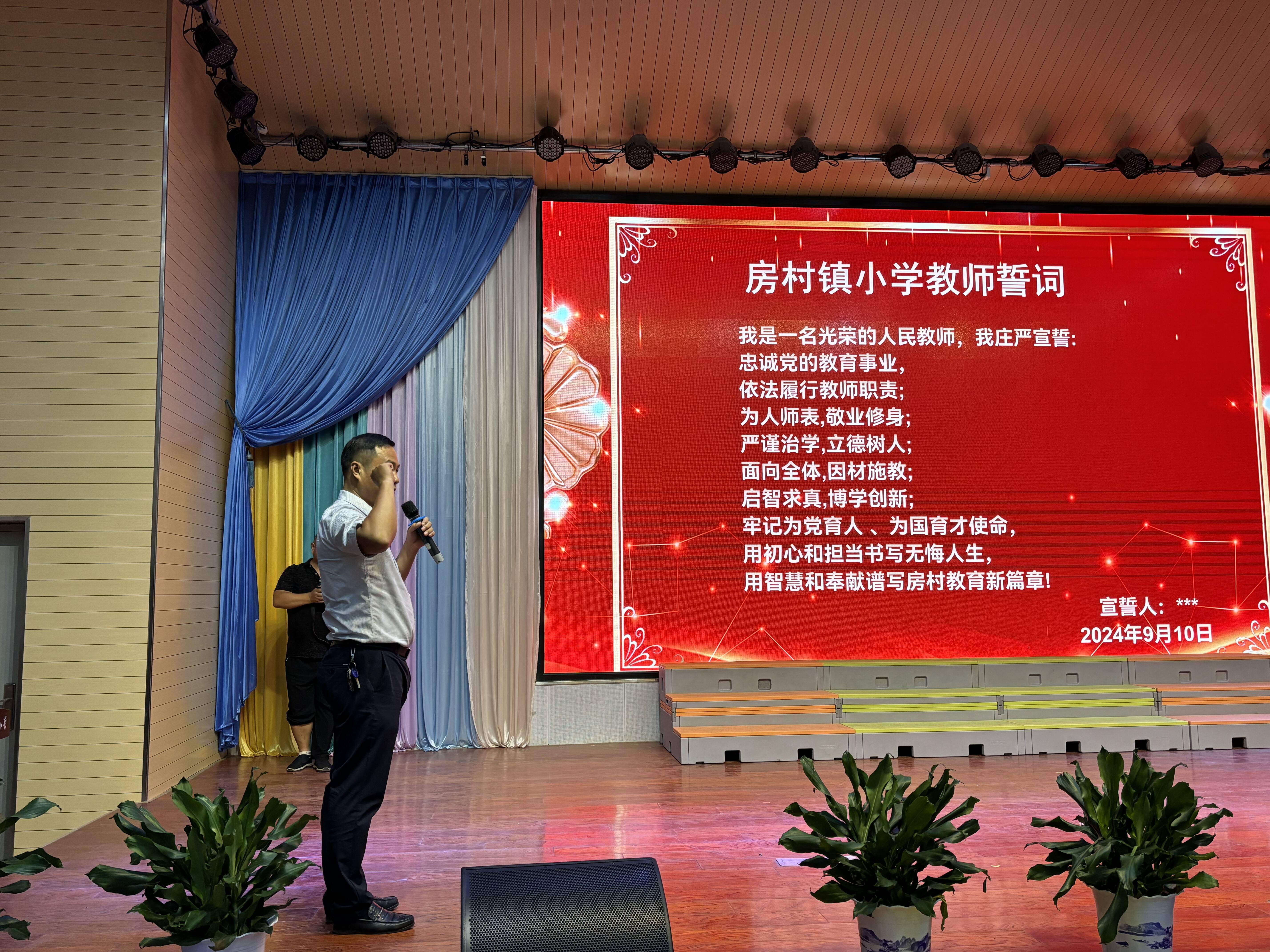 接着,全体师生共同学习模范人物事迹,他们的精神深深感染着每一个人,激励大家以他们为榜样,不断追求卓越。在集体宣誓环节,老师们的誓言铿锵有力,表达了他们铭记教育使命、为房村镇小学的美好未来努力奋斗的决心。