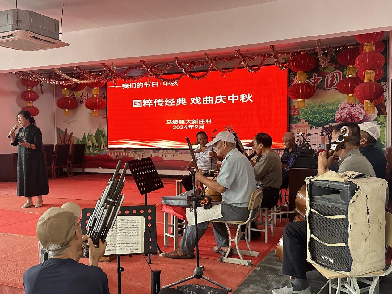 为弘扬中国传统文化,增强文化自信,丰富辖区村民精神文化生活。近日,马坡镇大新庄村新时代文明实践站在村文化礼堂开展了“国粹传经典 戏曲庆中秋”为主题的庆中秋活动,让村民共同欢度中秋佳节,感受文化魅力。