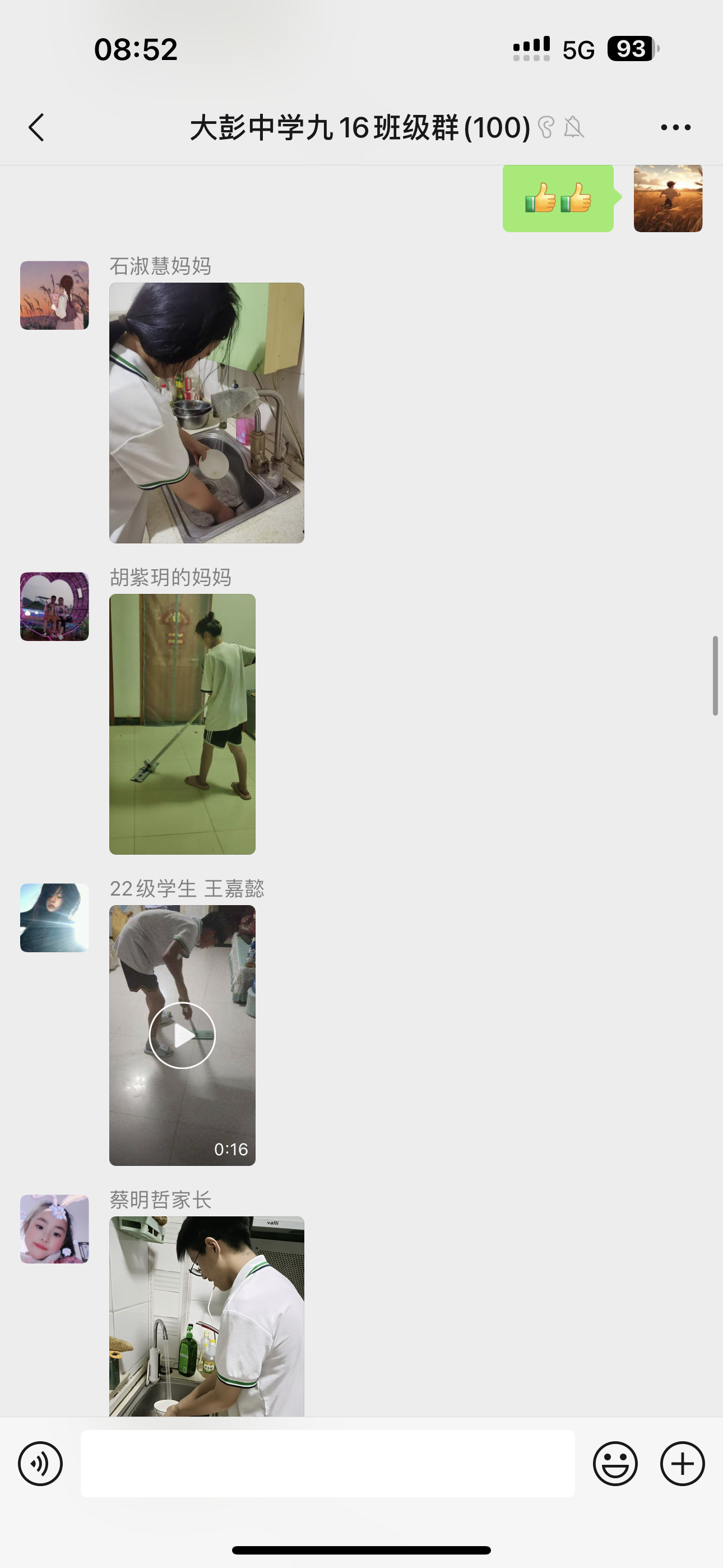 大彭中学把劳动赋予生活、实践与教育中,鼓励学生在家中做力所能及的劳动,争当劳动小能手。坚持每天帮助家长做力所能及的家务,学习几种劳动技能,在学习中享受劳动的乐趣,让父母感受来自孩子的关爱。