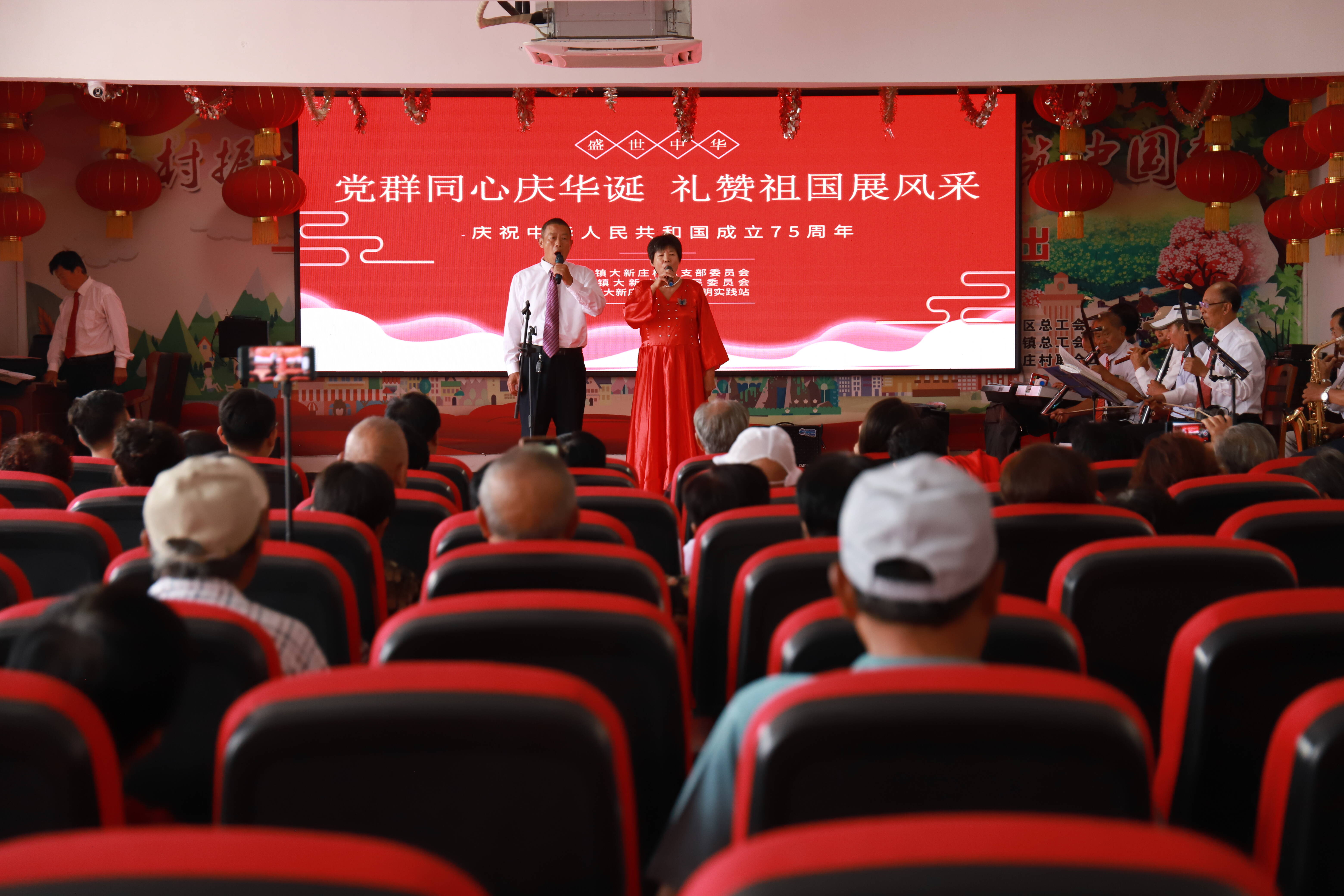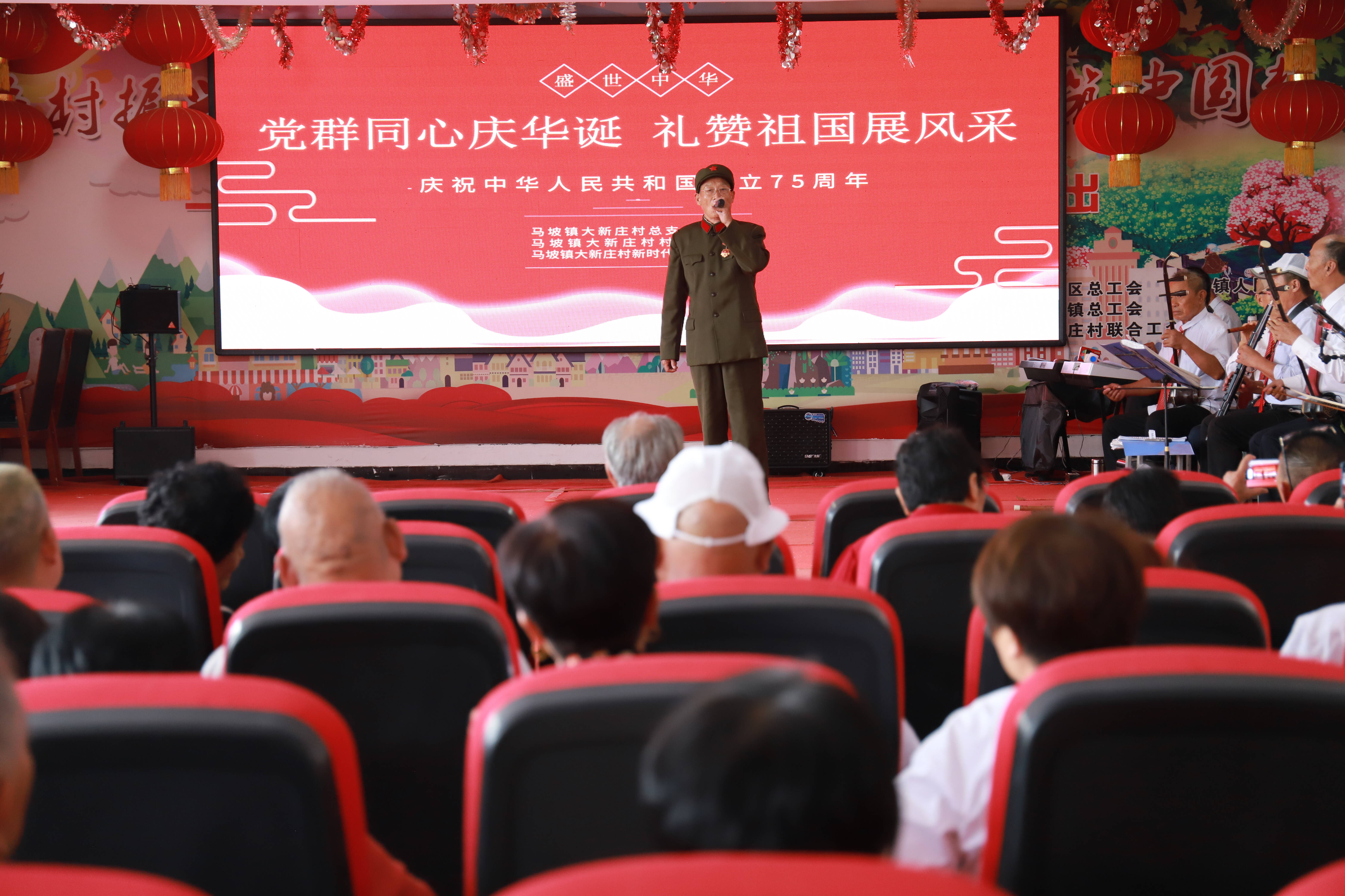 在国庆节即将来临之际,为热烈庆祝中华人民共和国成立75周年,丰富广大群众的精神文化生活,展现村民积极向上、昂扬奋进的精神风貌,近日,马坡镇大新庄村在村文化礼堂,开展“党群同心庆华诞 礼赞祖国展风采”文艺演出活动。