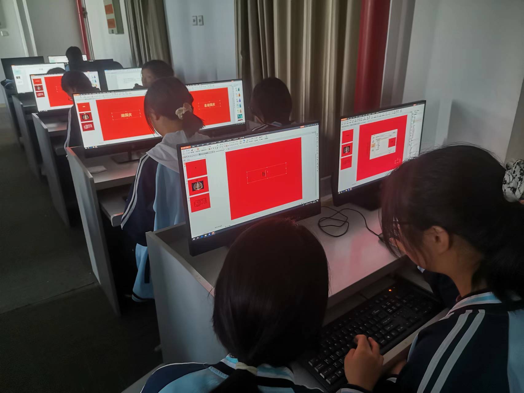 随后,各班级还开展了主题班会。班会上,同学们通过演讲、朗诵、歌曲等多种形式,表达了对祖国的祝福和热爱。班级黑板报活动也开展得如火如荼,各个班级的同学们充分发挥自己的创造力和想象力,用五彩斑斓的粉笔绘制出一幅幅精美的板报。板报内容丰富多彩,有对祖国历史的回顾,有对祖国壮丽山河的描绘,还有对祖国未来的美好憧憬。学校还组织开展了“电脑绘画庆国庆”活动,学生踊跃报名参加。这些板报和绘画不仅展现了同学们的艺术才华,更表达了他们对祖国的深深热爱。
