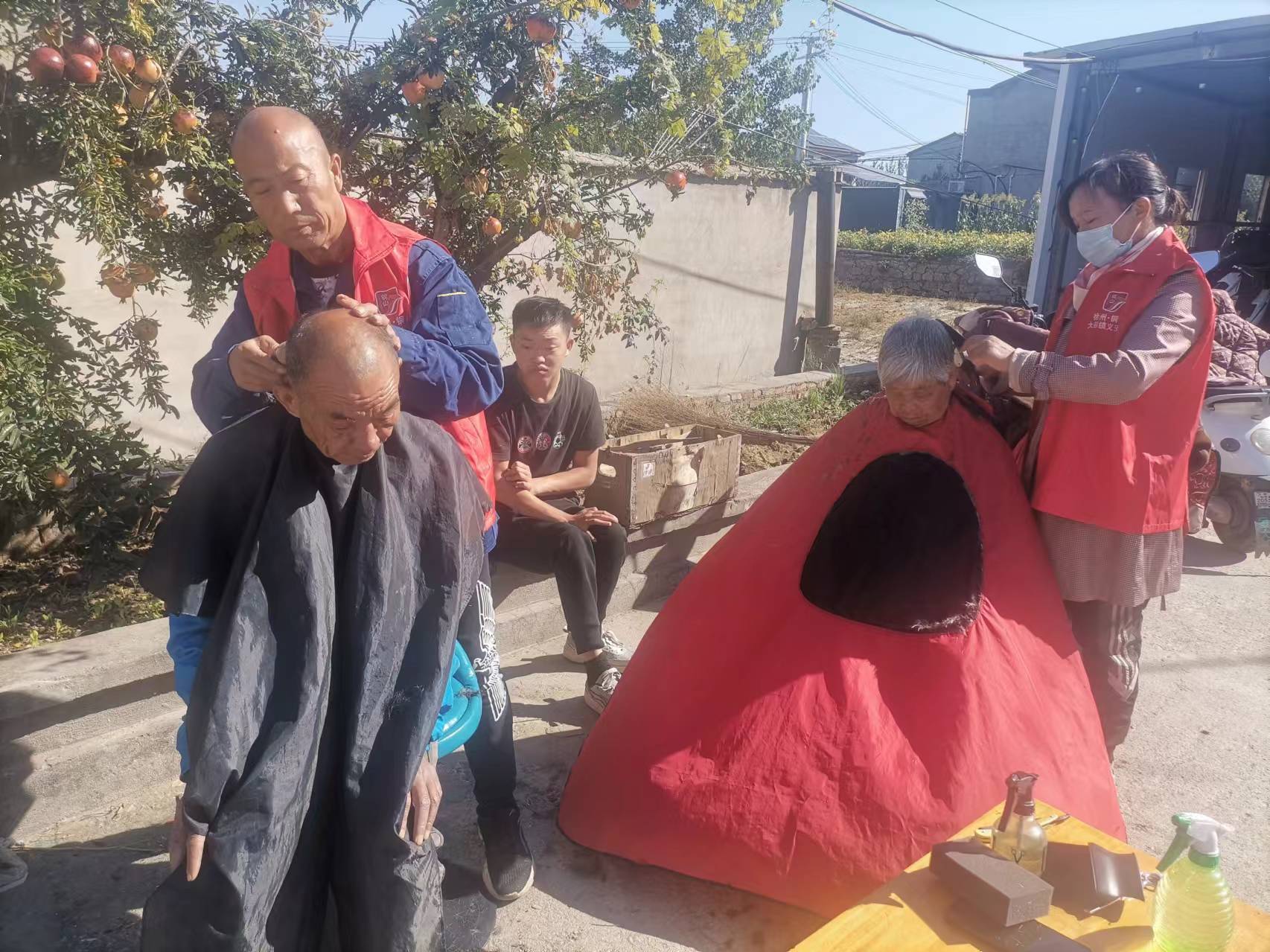 节日期间,志愿者还精心筹备了免费理发志愿服务活动。活动现场,理发师志愿者展现精湛技艺,剪子、推子、梳子、围布等工具也一应俱全,尽显专业。志愿者贴心地为老人围好围布,耐心询问老人对发型的要求,一边与他们聊家常,一边细心地为每一位老人修剪头发,剪出了令老人们满意的发型。