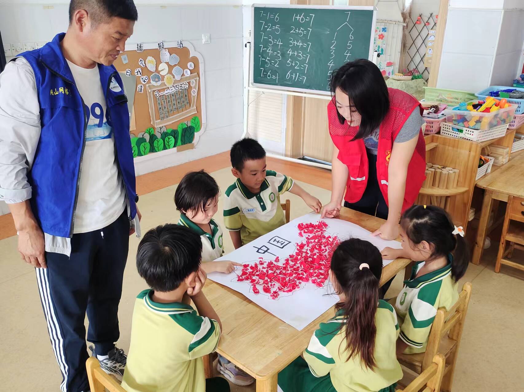 前八段村志愿者、网格员走进幼儿园开展爱国主义教育活动。老师通过图片、视频、故事等形式,让小朋友了解国庆节的来历,小朋友用小手拼贴出中国地图、小红旗,通过手工绘画活动,将爱国主义的种子播撒在孩子们的心中。