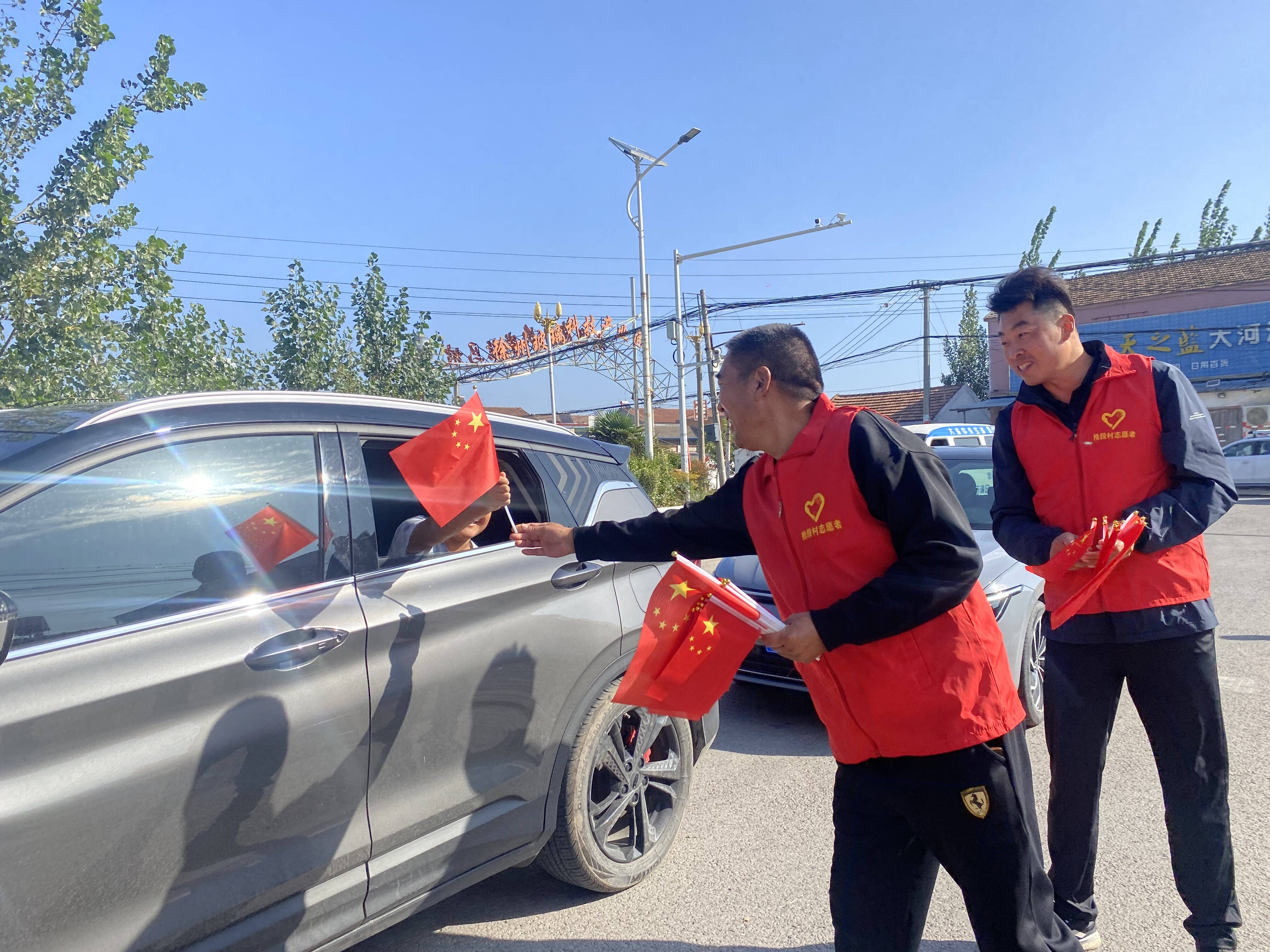 “您好,送给您一面小国旗,祝您国庆快乐!”10月1日上午,拾段村开展“送你一面小红旗”文明实践活动,志愿者为周边商户及过往群众送上象征爱国情怀的小红旗,一面面国旗在手中挥舞,处处都是一抹浓烈的中国红,共同表达对祖国的热爱与祝福。