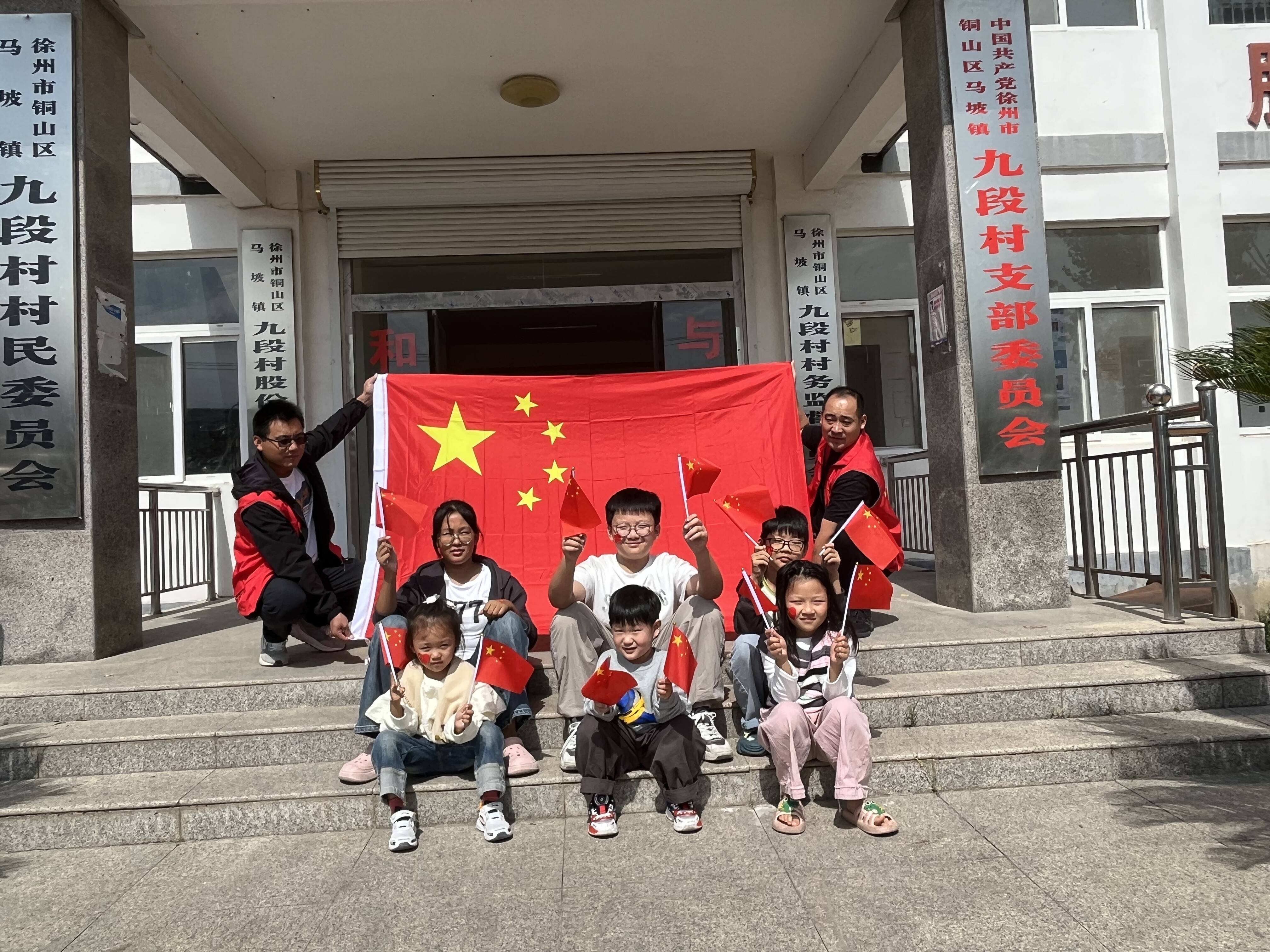 九段村的小朋友们在志愿者的带领下,开展“我和国旗合个影”迎国庆主题活动,在鲜红旗帜的映照下,他们一张张幸福的笑脸是对祖国母亲最美好的祝福,心怀报国志,倾诉爱国情。