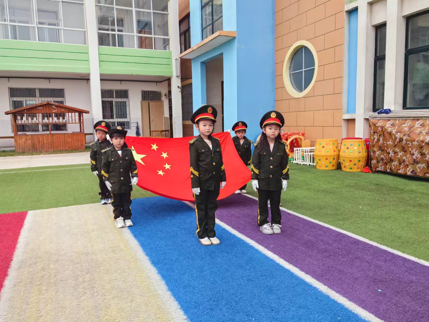 镇中心幼儿园开展了“童真迎国庆 红色润童心”国庆节主题系列活动,鲜红的五星红旗像一团火焰冉冉升起,小小护旗手们精神抖擞,高举五星红旗,随着国歌响起,孩子们向庄严的五星红旗行注目礼,表达崇高的敬意。