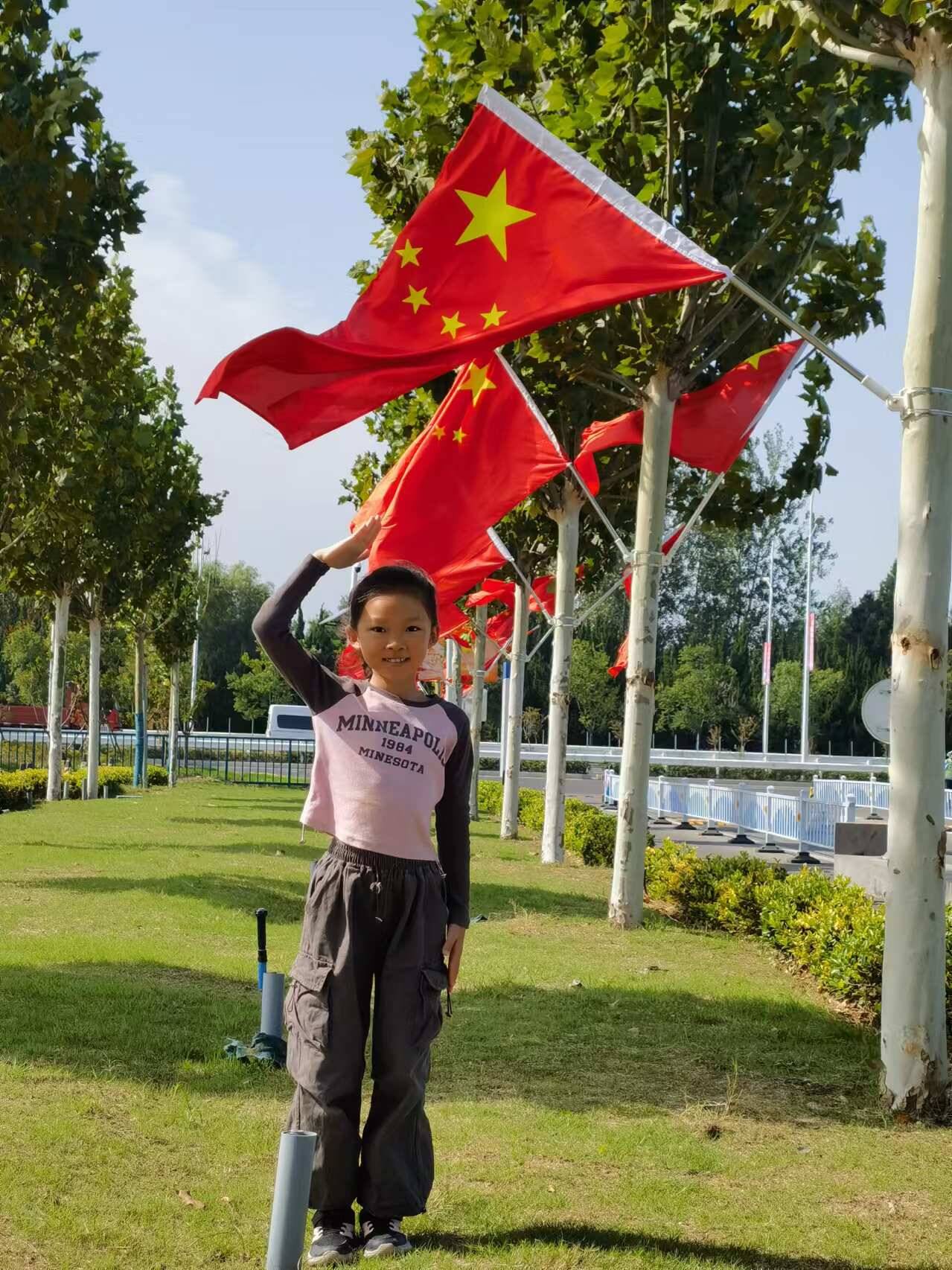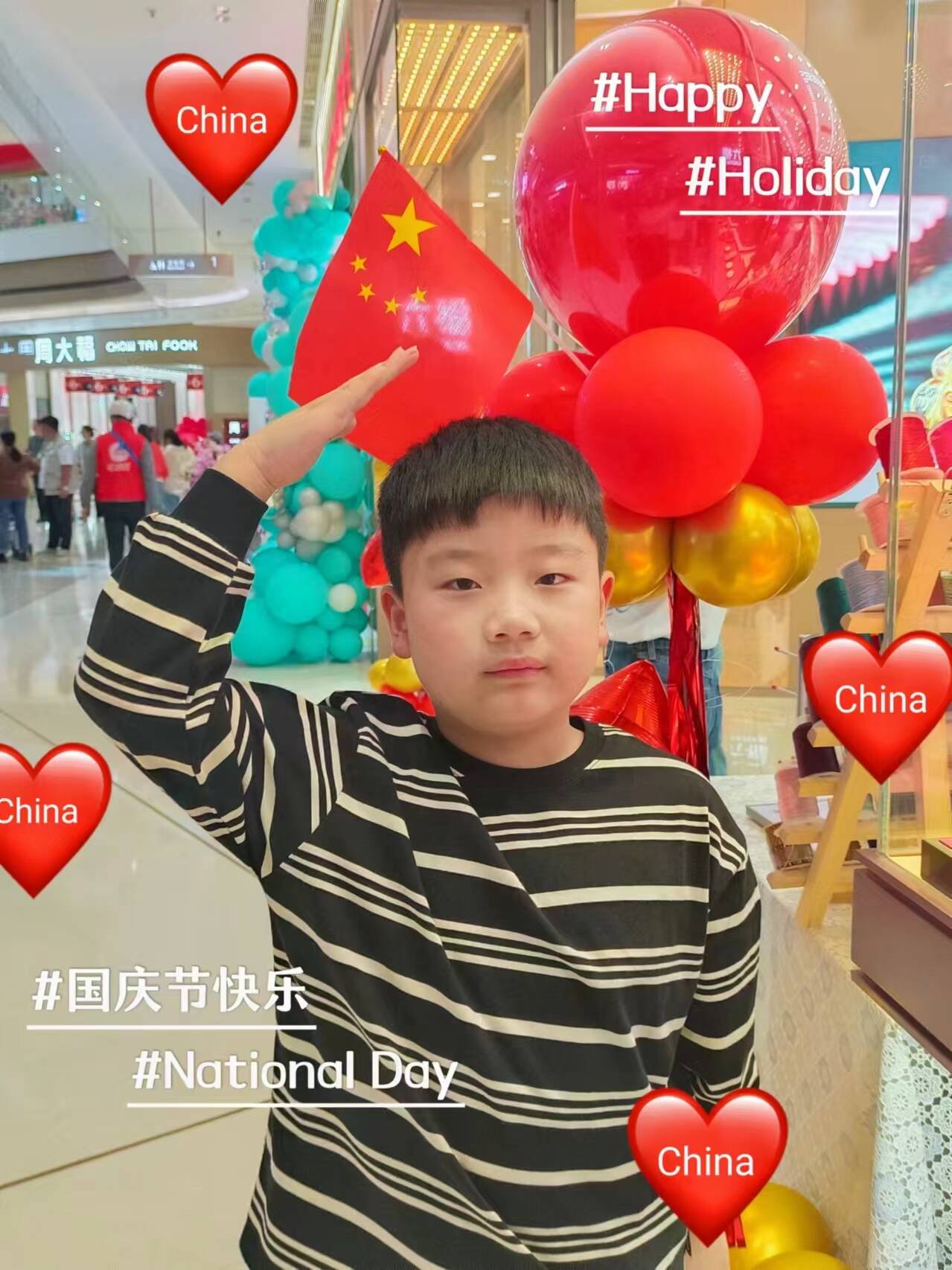 在国庆节期间,街道和商场都装饰着彩灯,洋溢着欢乐的气氛,鲜红的五星红旗在风中飘扬。一二年级的同学们去寻找那最艳丽的一抹中国红,捕捉下为祖国庆祝生日的快乐瞬间,共同见证祖国的75周年庆典。