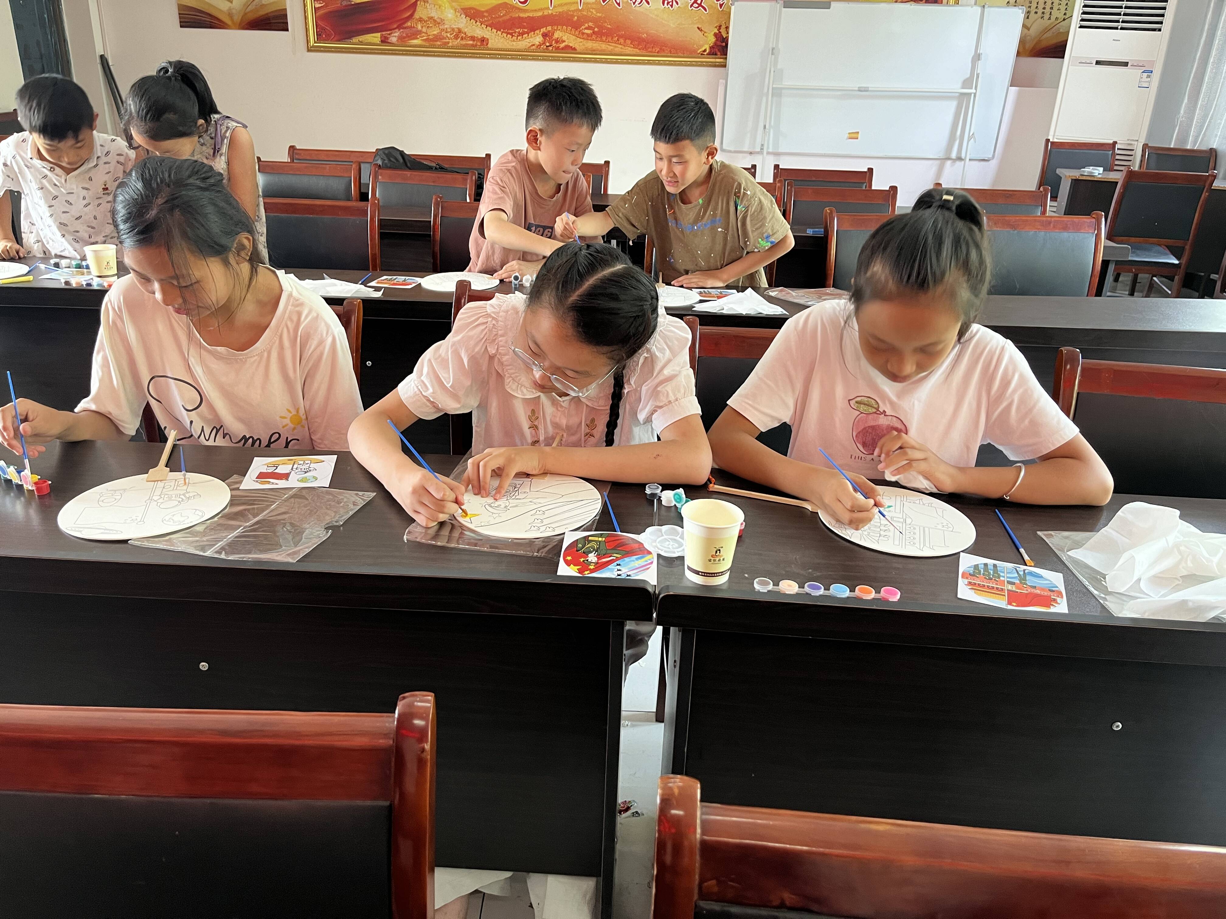 活动中,沙庄村妇女孝道志愿服务队的志愿者将此次活动的手工用的颜料、画笔等材料分发给大家,一边讲解一边演示绘团扇笔的使用方法,如何为图案上色等。在欢乐祥和的氛围中,青少年、儿童们用自己的双手将一幅幅精美的手工画创作出来,用独特的方式展现对祖国的无限热爱,以真挚的情感祝福伟大祖国繁荣昌盛。最后,青少年、儿童们手持着作品进行留影,在每个人心中留下一份祝福和喜悦。