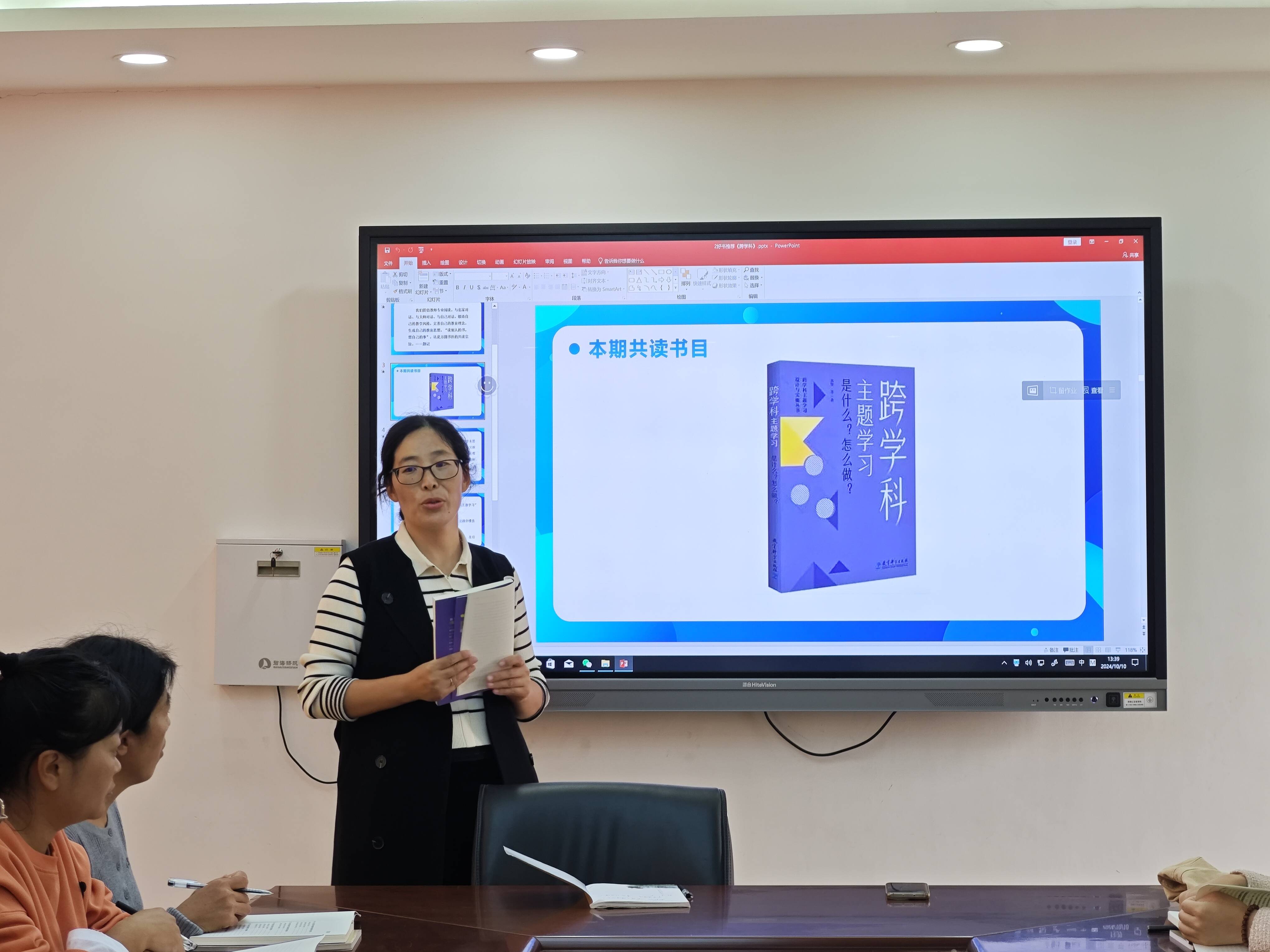 2024年10月10日下午第一节课,铜山区房村镇中心小学“方圆书社”全体成员齐聚二楼会议室,在社长董艳老师的主持下,共同参与新学期好书推荐活动,此次活动聚焦于一本极具启发性的书籍——《跨学科主题学习》。
