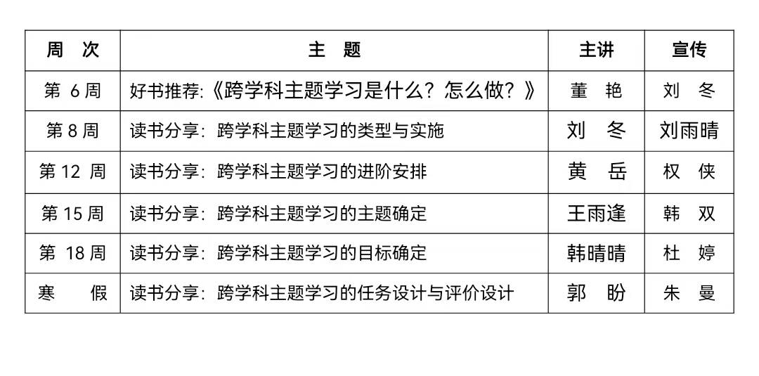 活动开始前,社长董老师以简洁而有力的开场词,点明了本次活动的重要意义。她强调,在当今教育不断变革与发展的时代,跨学科主题学习已成为提升学生综合素养、培养创新思维的关键途径。而《跨学科主题学习》这本书,无疑为教师们打开了一扇探索新教育模式的大门。
