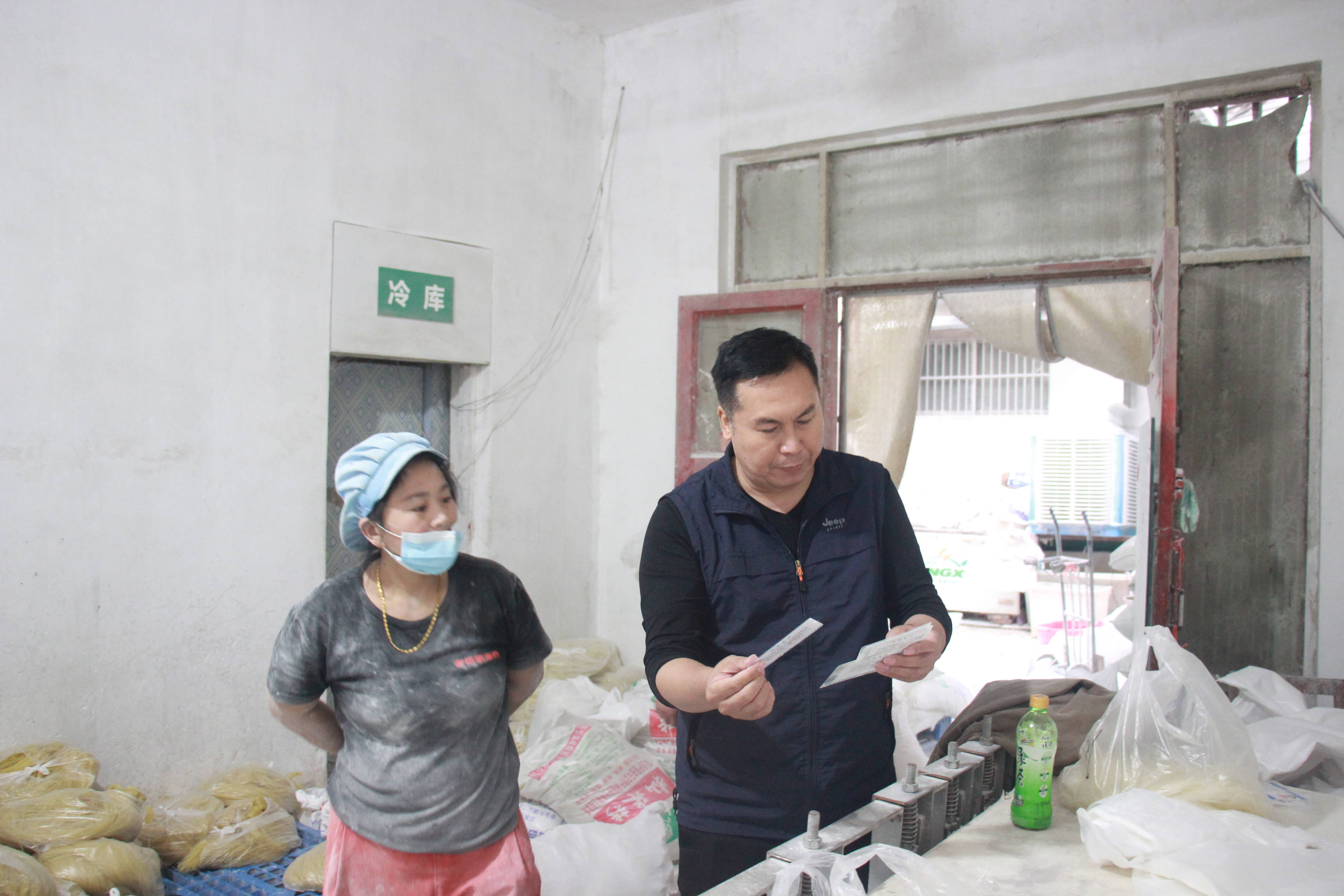 工作中走访了田巷村的薛记老鹅加工点、富鹏米线加工厂和杨认真食品厂等一些生产经营场所,重点检查企业是否持证合法经营、加工场所环境卫生是否整洁干净、加工流程的污染处理设施是否规范、从业人员是否持有有效的健康证明等。