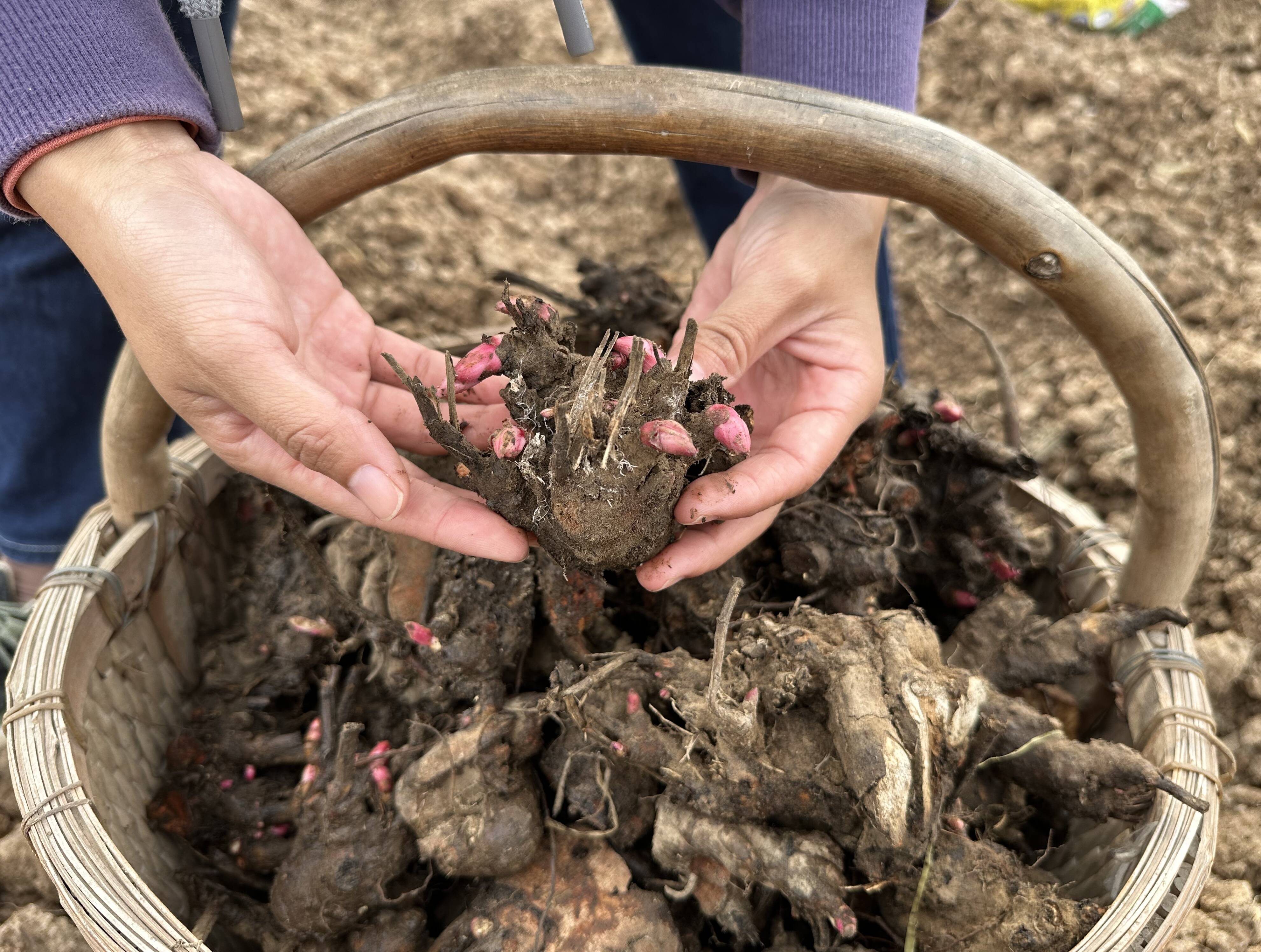 种植现场,村干部化身志愿者,帮着刨坑、栽根、埋土,按照专业指导每株前后间距30公分,左右间隔留好浇灌蓄水沟,同时积极主动向来自亳州的专业人员交流相关信息,增进对红芍种植的了解。