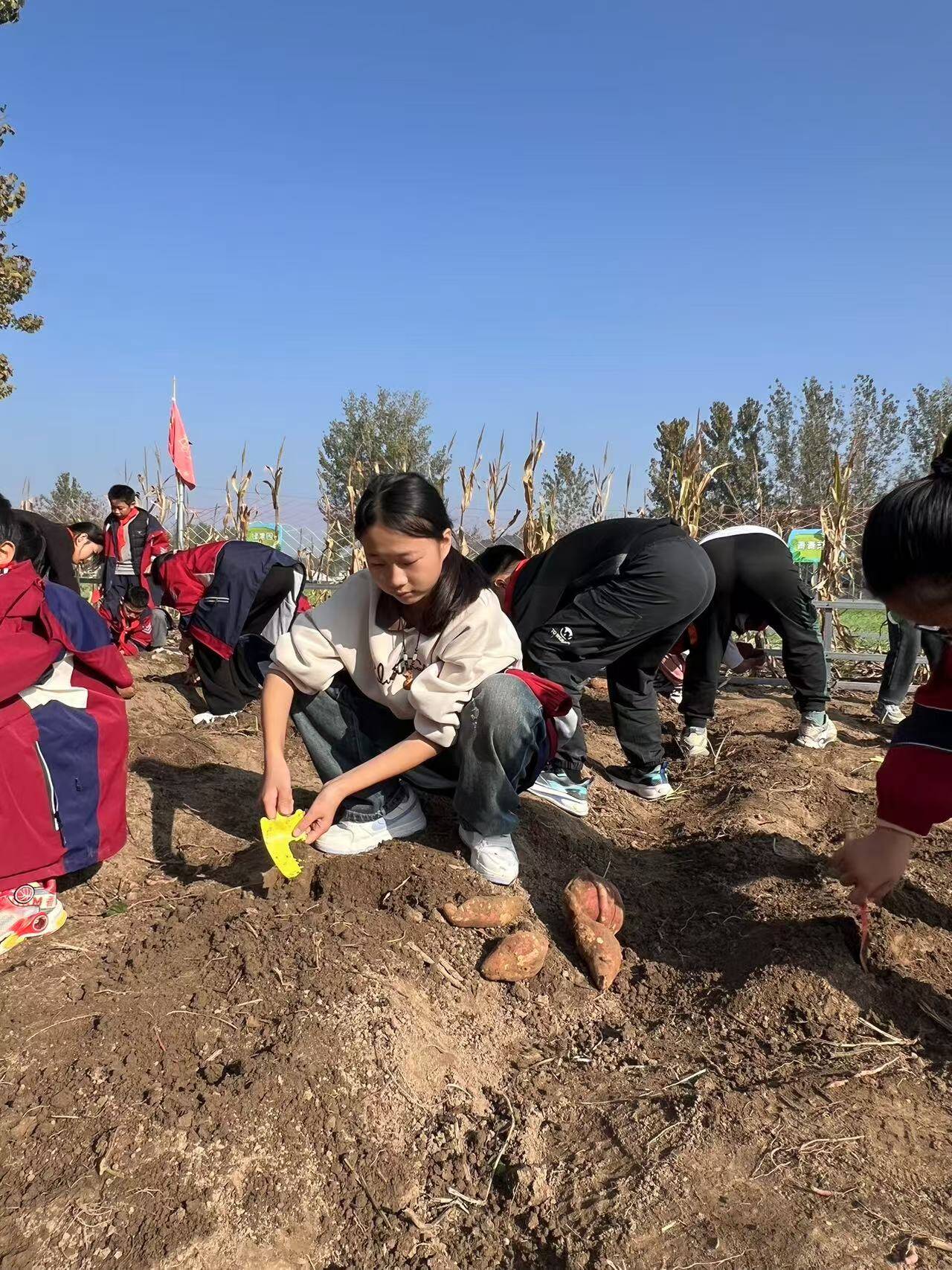 深秋时节、硕果飘香,城头村的劳动基地迎来了红薯和花生的丰收。为了让学生们体验收获劳动果实的喜悦,培养他们劳动与合作的能力,11月1日同学们齐聚劳动基地,开展采摘活动。