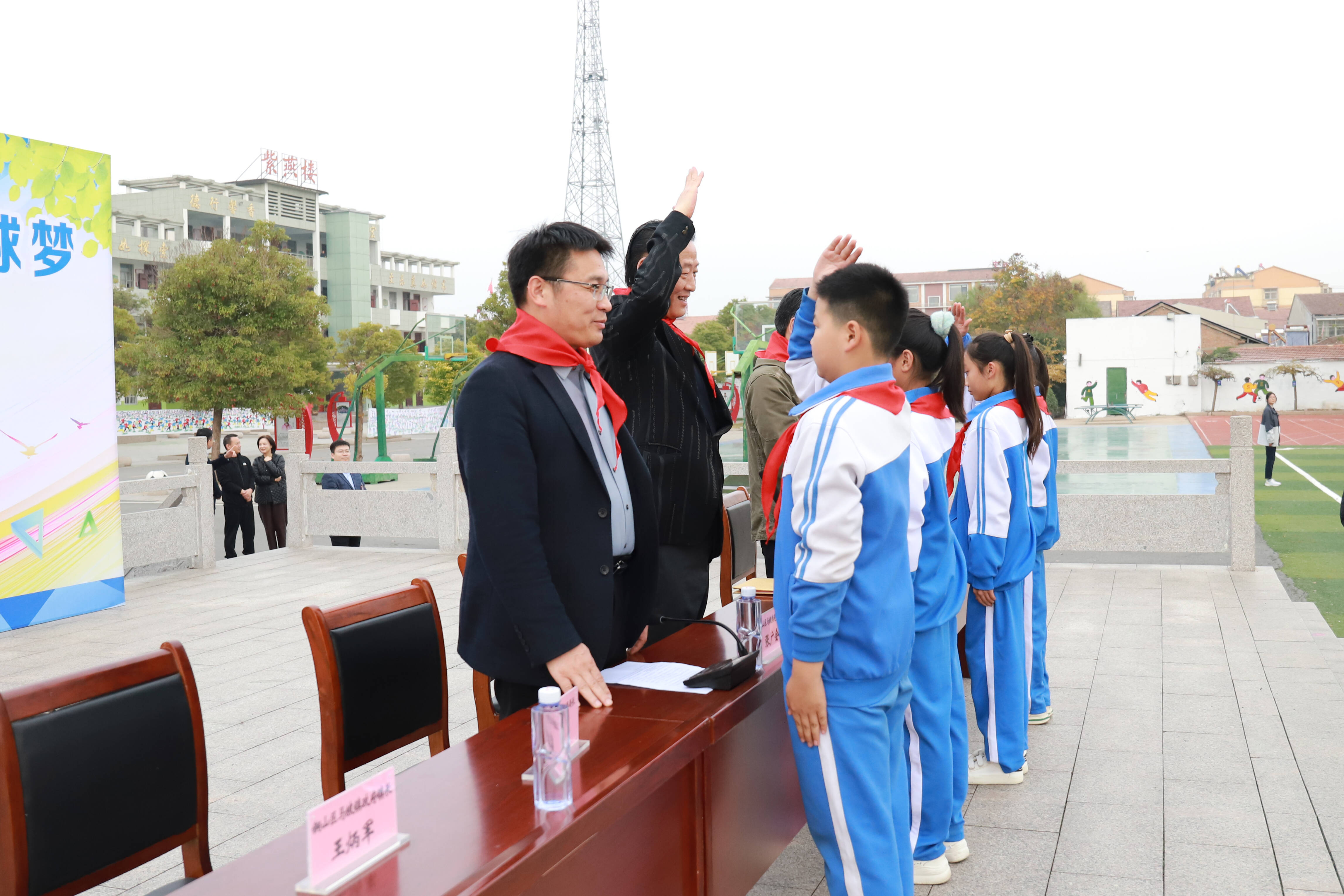 捐赠仪式开始前,少先队代表向出席捐赠仪式的领导、嘉宾佩戴红领巾,以此表达同学们深切的敬意和感谢,场下响起热烈的掌声。