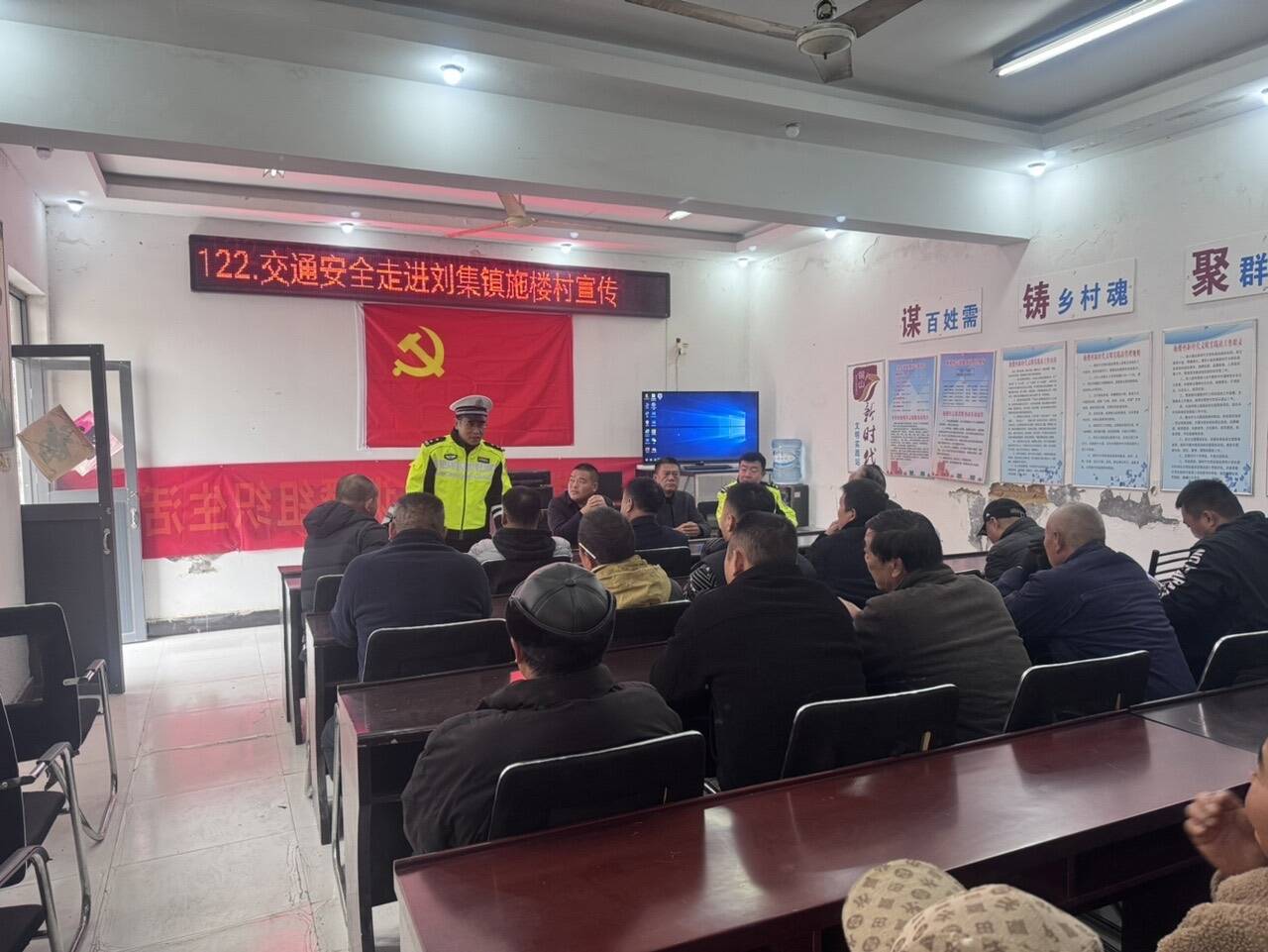 在施楼村,宣传民辅警通过播放教育片、发放交通安全宣传资料、面对面讲解等方式,针对秋冬季农村群众出行特点,与群众唠家常、话平安,向群众广泛宣传交通安全法律法规、安全出行常识。此外,还巧借开展“美丽乡村行”交通安全宣传活动,做到服务、宣传两不误。通过现场讲解交通安全知识、剖析典型交通事故案例,教育引导群众在日常出行中要严格遵守交通法律法规。