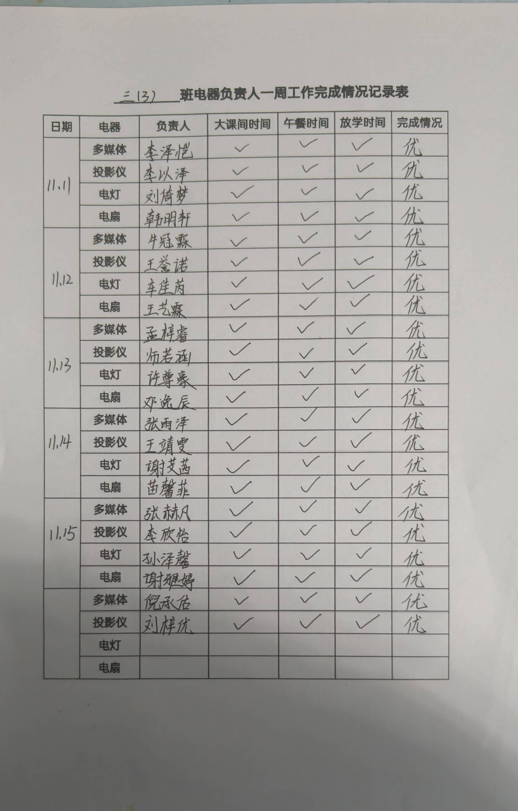 每个班级每天安排“安全小卫士”守护班级的电器安全,做到人走即关,安全使用。