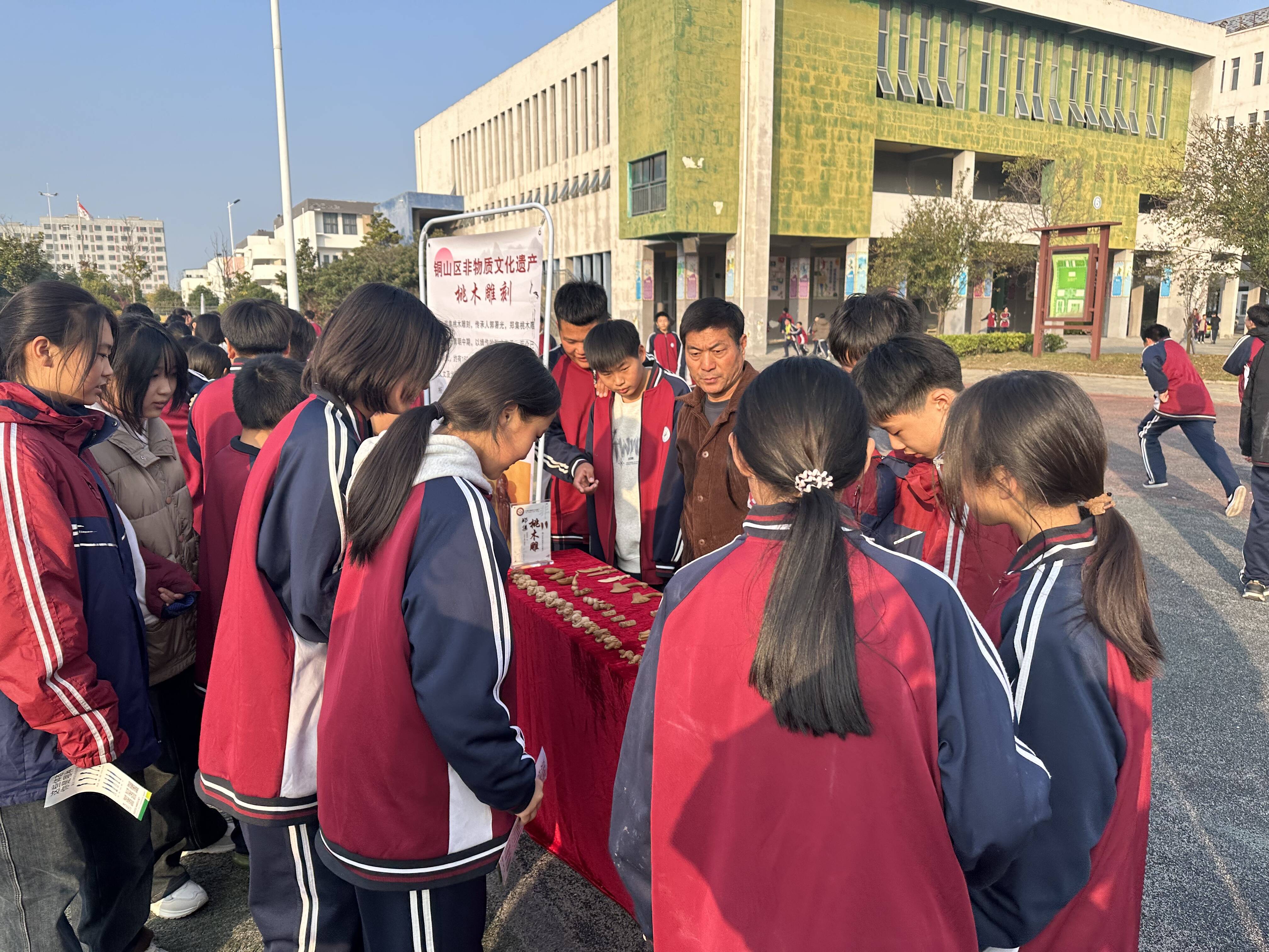 非物质文化遗产承载着先辈的创造力、审美与价值观念,如璀璨明珠闪耀独特光芒,非遗走进校园,如清泉注入年轻心灵,学生们既能感受传统文化博大精深,又能激发民族文化热爱与自豪。本次非遗进校园活动汇聚铜山境内众多精彩非遗作品,有麻绳编织、樊响扦子、传统舞狮、中医推拿、养生香包、沙塘韭黄和葫芦烙画等,活动现场,师生可以与非遗文化传承人交流互动,也可亲身体验非遗技艺,领悟非遗奥秘精髓。