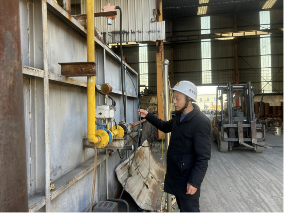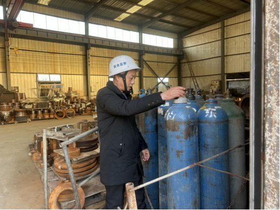 在羽皎,工作人员跟进隐患整改进度的同时发现了一些新的隐患,如机械设备的控制柜箱门缺失,砂轮机无防护罩,气瓶存放区存在气瓶混放现象等,已指导企业安全管理人员立即落实整改措施。并要求,必须摒弃麻痹和松懈的思想,切实承担起安全生产主体责任,严格遵守安全操作规程,尤其注意工人在生产中的安全防护,从源头防范和化解安全生产风险,坚决消除各类风险隐患。