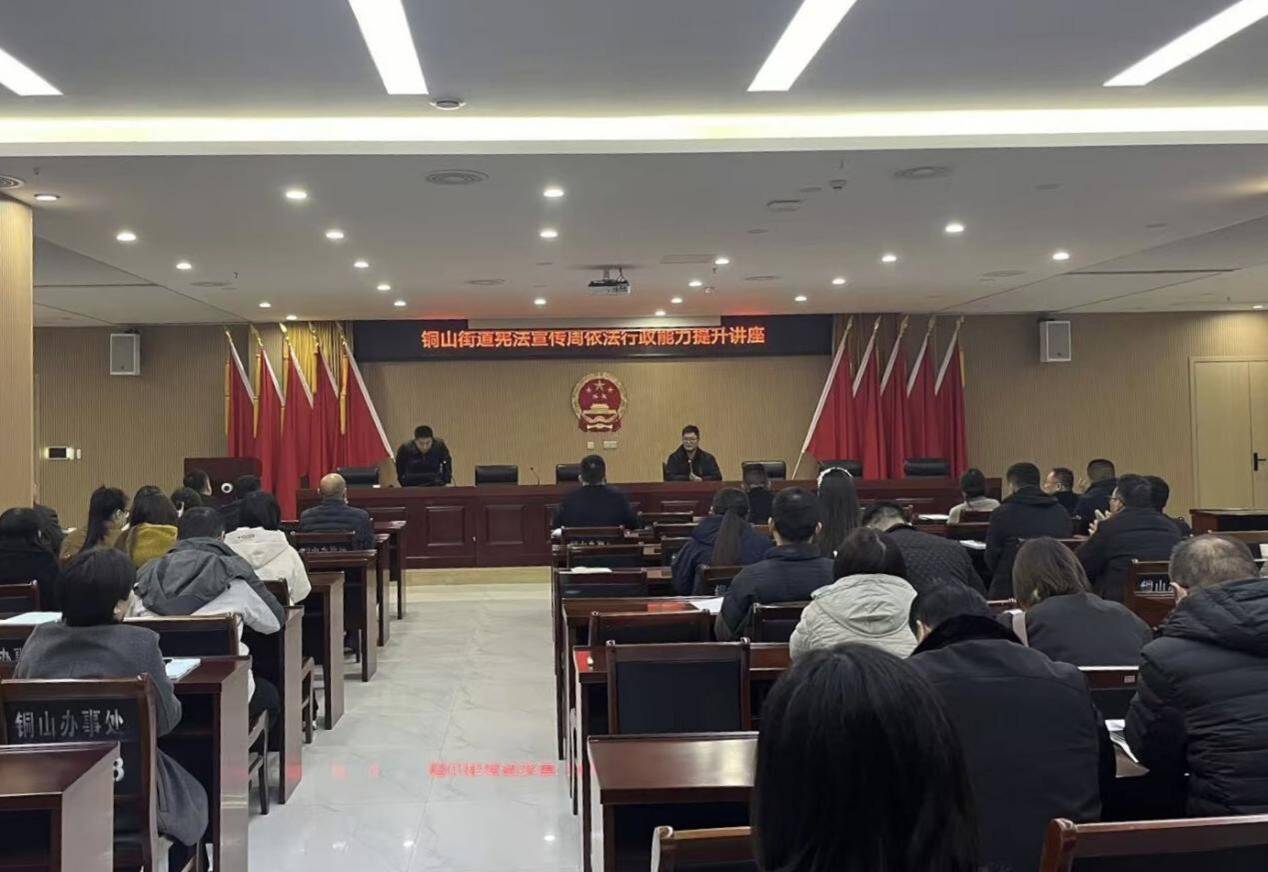 为增强职工的法律意识,提升基层治理水平,“国家宪法日”当天,铜山街道邀请区司法局复议应诉科科长李廷轩开展依法行政能力提升讲座。