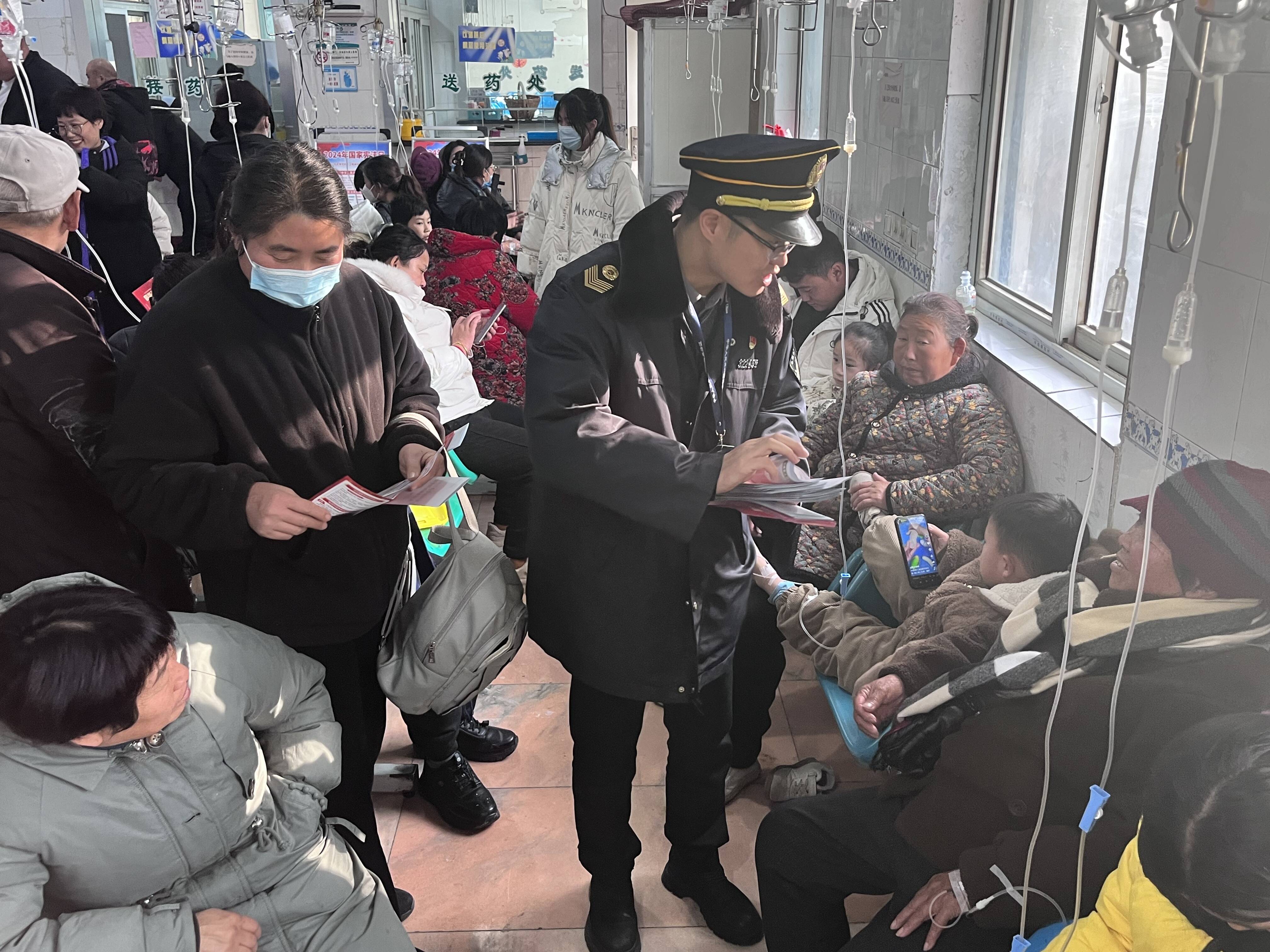 普法入医院,宣传零距离。卫生监督员至铜山区棠张镇卫生院开展普法宣传活动,发放宣传折页,重点宣传宪法知识,规范医疗机构依法执业,打击无证行医及非法医疗美容,营造安全和谐的就医环境,保障人民群众健康权益和生命安全;各乡镇卫生院通过电子屏幕和宣传版面的形式向职工和社会大众宣传宪法;医院内设立咨询台,接受群众面对面咨询,宣传相关法律法规。