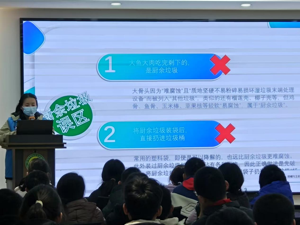 “什么是垃圾分类?”“为什么要垃圾分类?”课上,徐州新淮环境公司的工作人员通过生动有趣的课件向同学们分享了垃圾分类的相关知识,让同学们了解到垃圾分类的重要性以及分类的方法。课程还加设了提问的环节,让同学们回顾垃圾的类别并说说各类垃圾的处理方式。