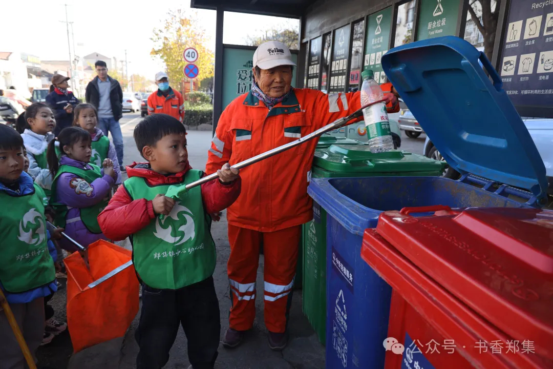 在环卫志愿者的带领下,小朋友们化身“小小城市美容师”,通过现场教学,孩子们学会了垃圾分类、认识了很多的劳作工具、环保知识等。