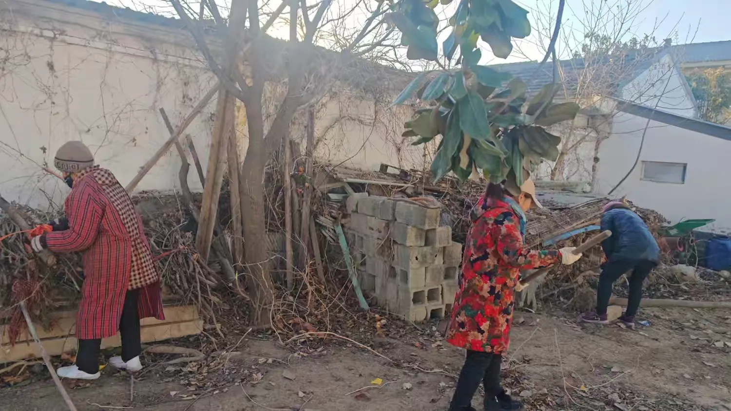 各组组长带领工作人员早早行动,对路边的枯草进行清理,对杂物进行归整。大家齐心协力,不畏严寒,不放过任何一个角落,努力改善村庄环境。
