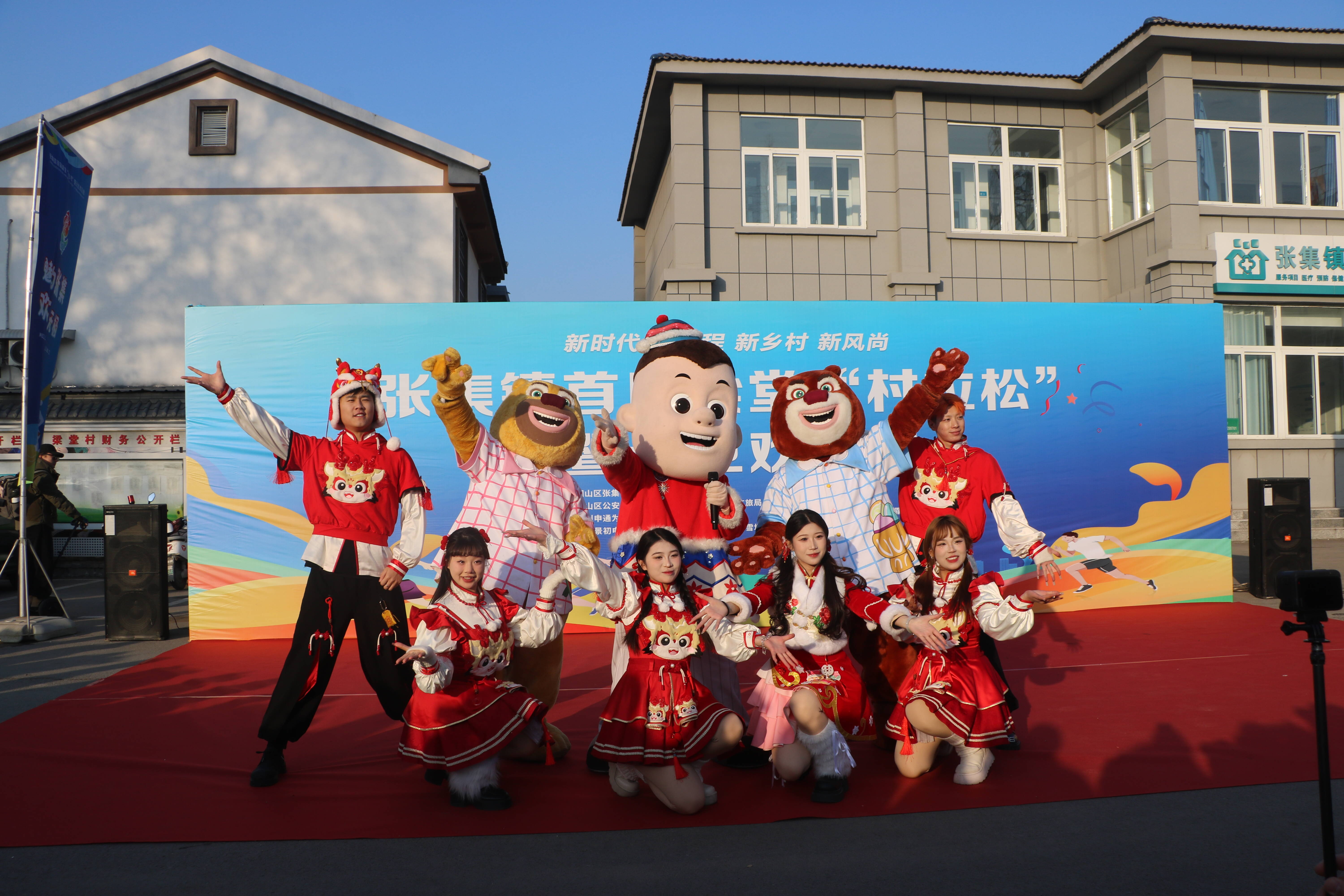 “光头强”站台现场加油打气,“熊大”“熊二”组团赛道热力领操……1月1日上午9时,铜山区张集镇梁堂村村委会门前的小广场上,热闹非凡。随着一声发令枪响,488名来自各地的跑友在梁堂村5.5公里的彩虹赛道上激情开跑,以热辣滚烫的方式拥抱新年。