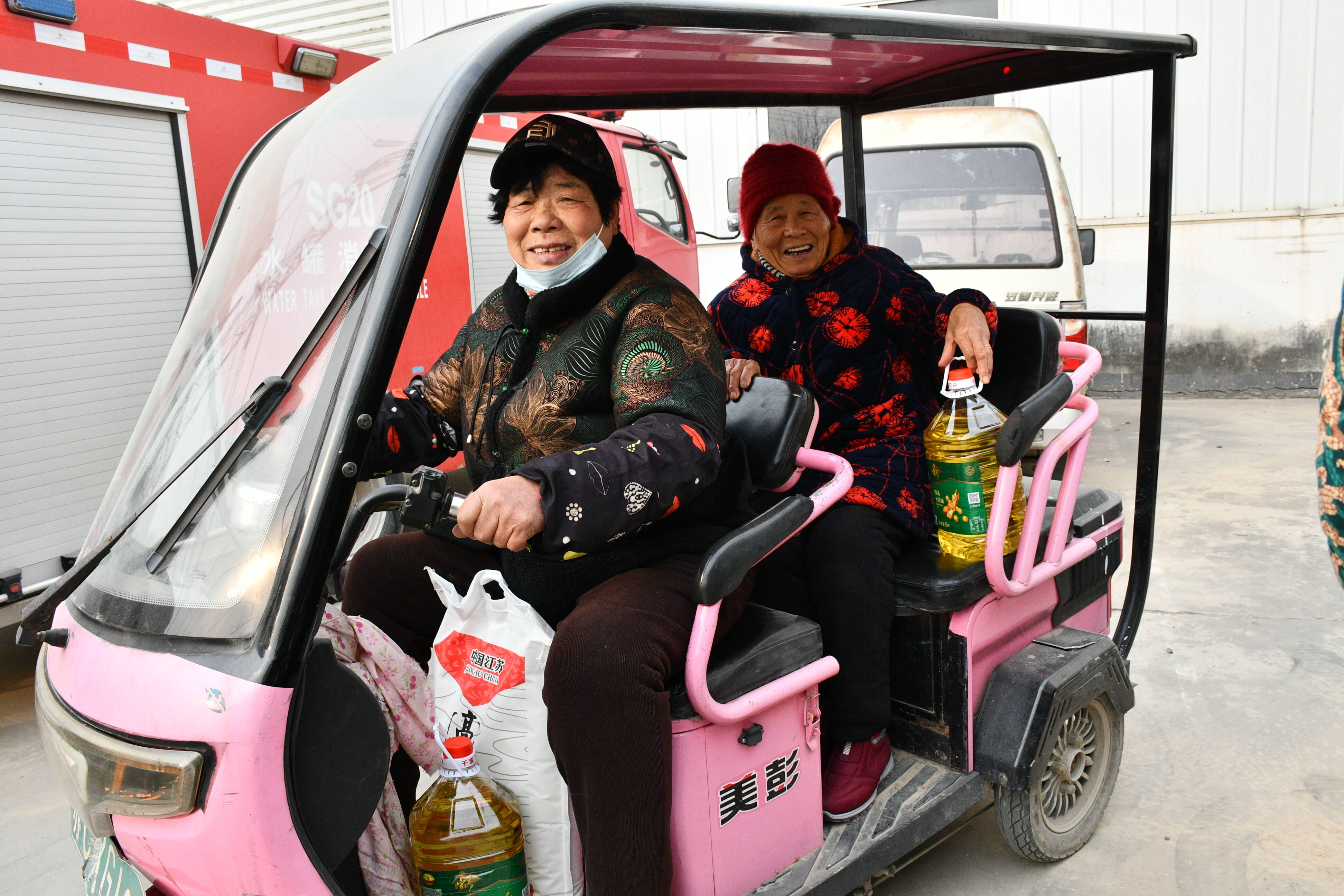 76岁的李瑞玲和83岁的姚玉珍结伴开着电动三轮车来到村党群服务中心,他们笑着说:“现在虽然都不缺吃的喝的,但过节了大家一起来领过节礼,在这里又能见到同龄人,就喜欢这个高兴的氛围。”“家有一老,如有一宝,希望我们村的老人们都能健康长寿,笑口常开。”村里的工作人员不忘送上祝福。