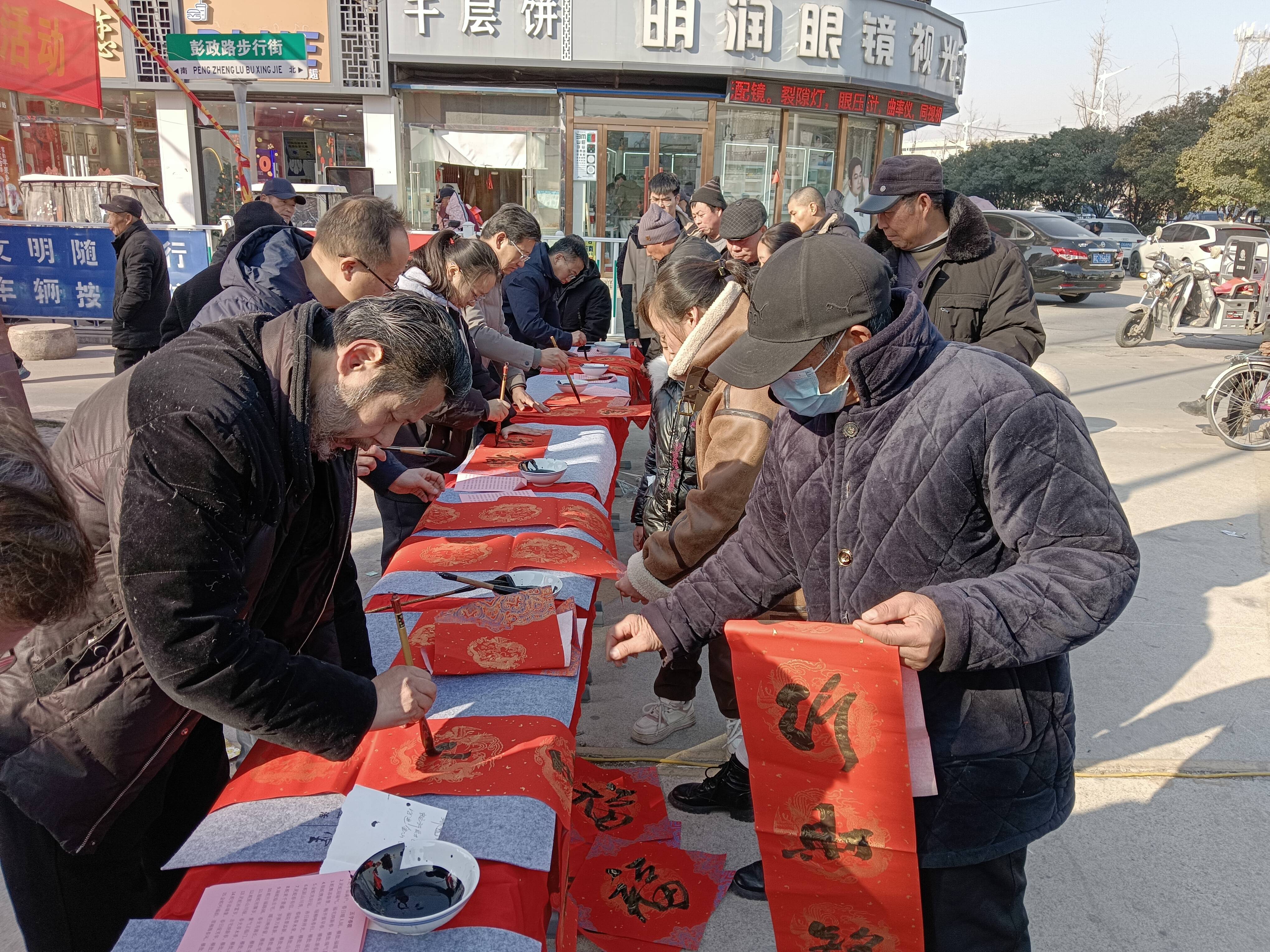 近日,大彭中学党支部在大彭镇彭政街热闹举办了一场别开生面的“写春联 送祝福”党建活动,为即将到来的新春佳节增添了浓浓的喜庆氛围,也拉近了党组织与群众之间的距离。