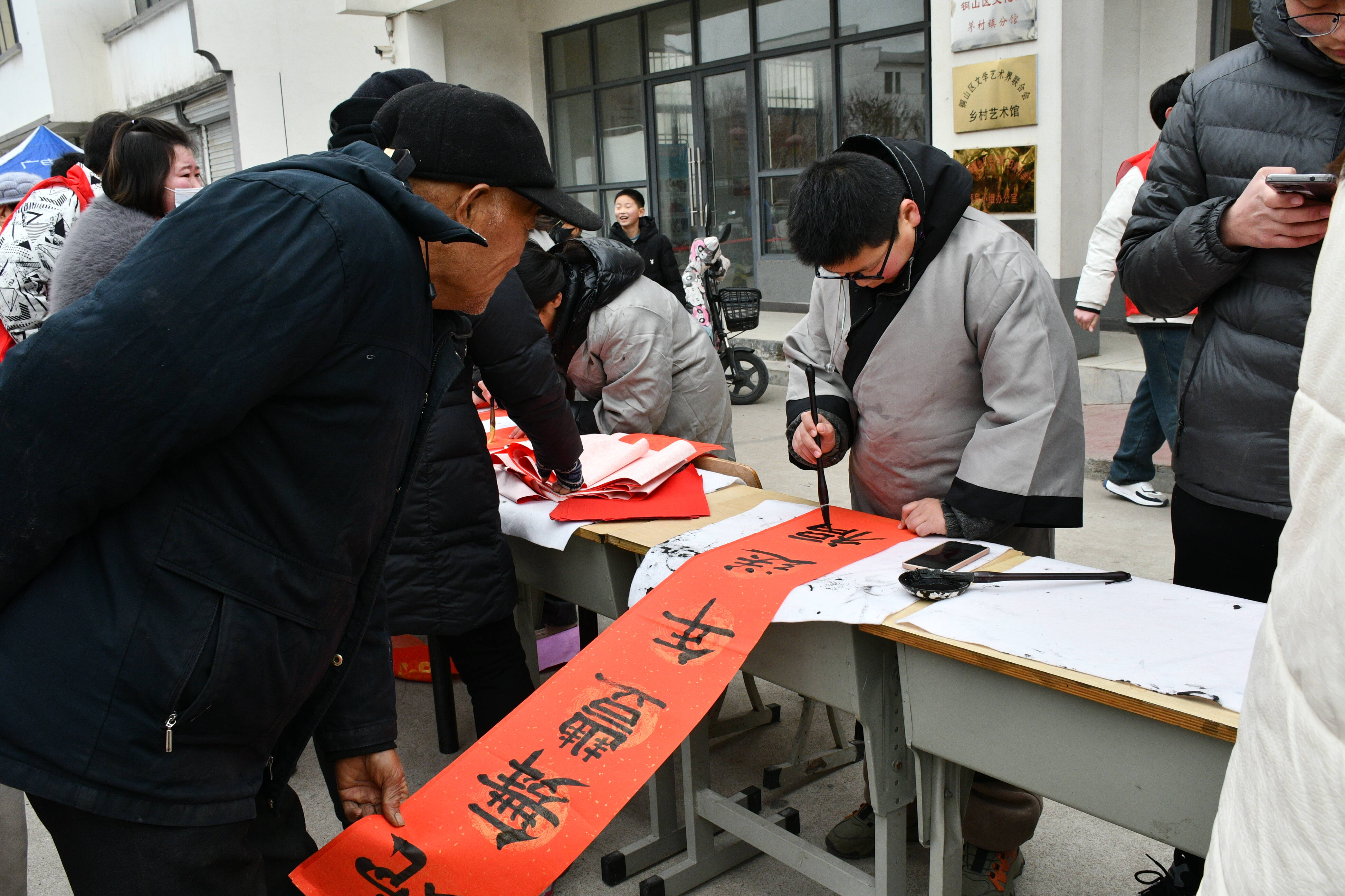 为了迎接新春佳节的到来,让全镇青少年感受传统佳节的魅力,弘扬中华民族传统文化,营造喜庆热闹、文明祥和的节日气氛,近日,茅村镇关工委联合镇新时代文明实践所在文体站开展青少年书写新春对联送祝福活动,辖区内“五老”志愿者也到现场发挥书法专长,引导青少年传承中华民族传统文化。