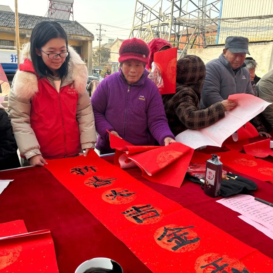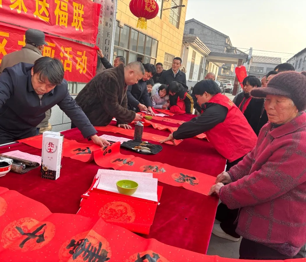 为弘扬中华优秀传统文化,营造喜庆祥和的节日氛围,大彭镇新时代文明实践所携手王门村、田巷村等新时代文明实践站,组织志愿者在村委会、实践站等地开展写春联、送福字活动。活动现场,志愿者们早早摆好桌子,备好笔墨和春联红纸,挥毫泼墨,为村民们书写饱含美好祝福的春联。村民们热情高涨,围聚在桌旁,一边欣赏书法创作,一边挑选心仪的春联,现场洋溢着浓浓的年味和温暖的情谊。