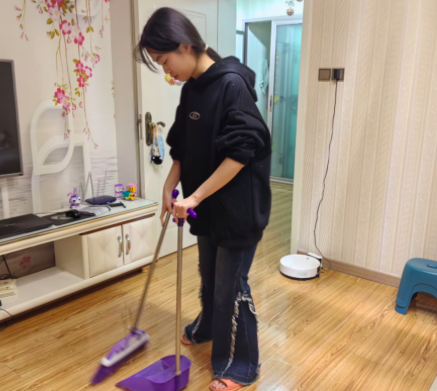 每逢春节来临,家家户户都要打扫卫生,将家里收拾得干干净净地迎接新年,同学们假期在家里积极参与家务劳动,擦玻璃,扫地、擦地、擦桌。拿起扫帚,同学们瞬间化身地面清洁小卫士。原本杂乱的地面、模糊的玻璃,在同学们的努力下,焕然一新。擦干净窗户,打扫干净地板,同学们又开始忙着帮忙贴春联。