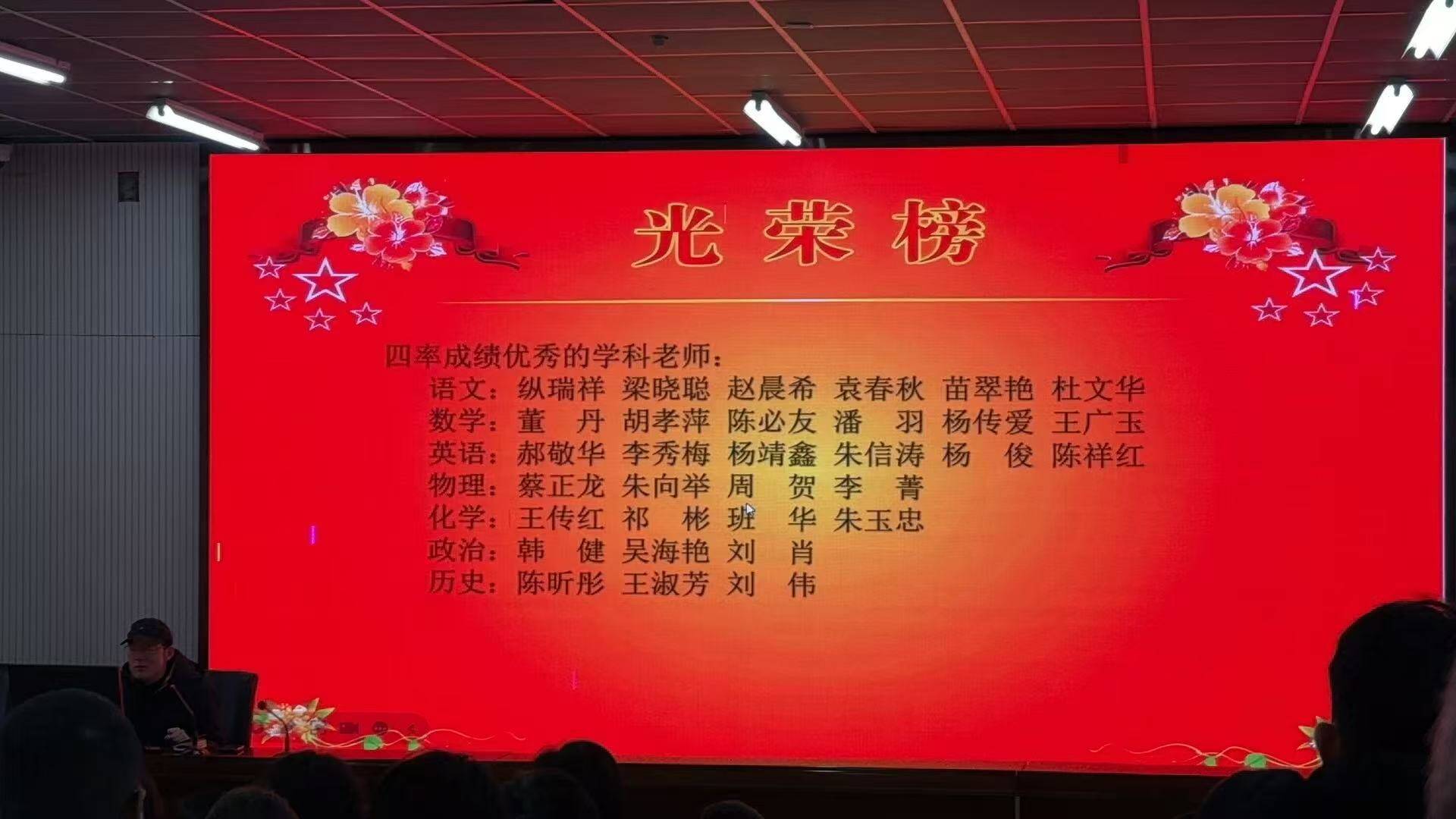 会上,王光灿副校长以本次期末监测成绩为切入口,与上届同期考试作了考情对比分析,明确指出了本届各班级、各学科的优势与不足。王校长凭借详实的数据,对本次期终调研进行了全面而细致的分析。从各学科的平均分、优秀率、及格率,到各分数段的学生分布,每一项数据都清晰直观地呈现在大家眼前。通过横向与纵向的对比,教师们不仅看到了自己所教学科在年级中的整体位置,更明确了与其他班级、其他学校之间的差距。这些数据不再是冰冷的数字,而是转化为一个个具体的教学问题,引发了教师们的深入思考。