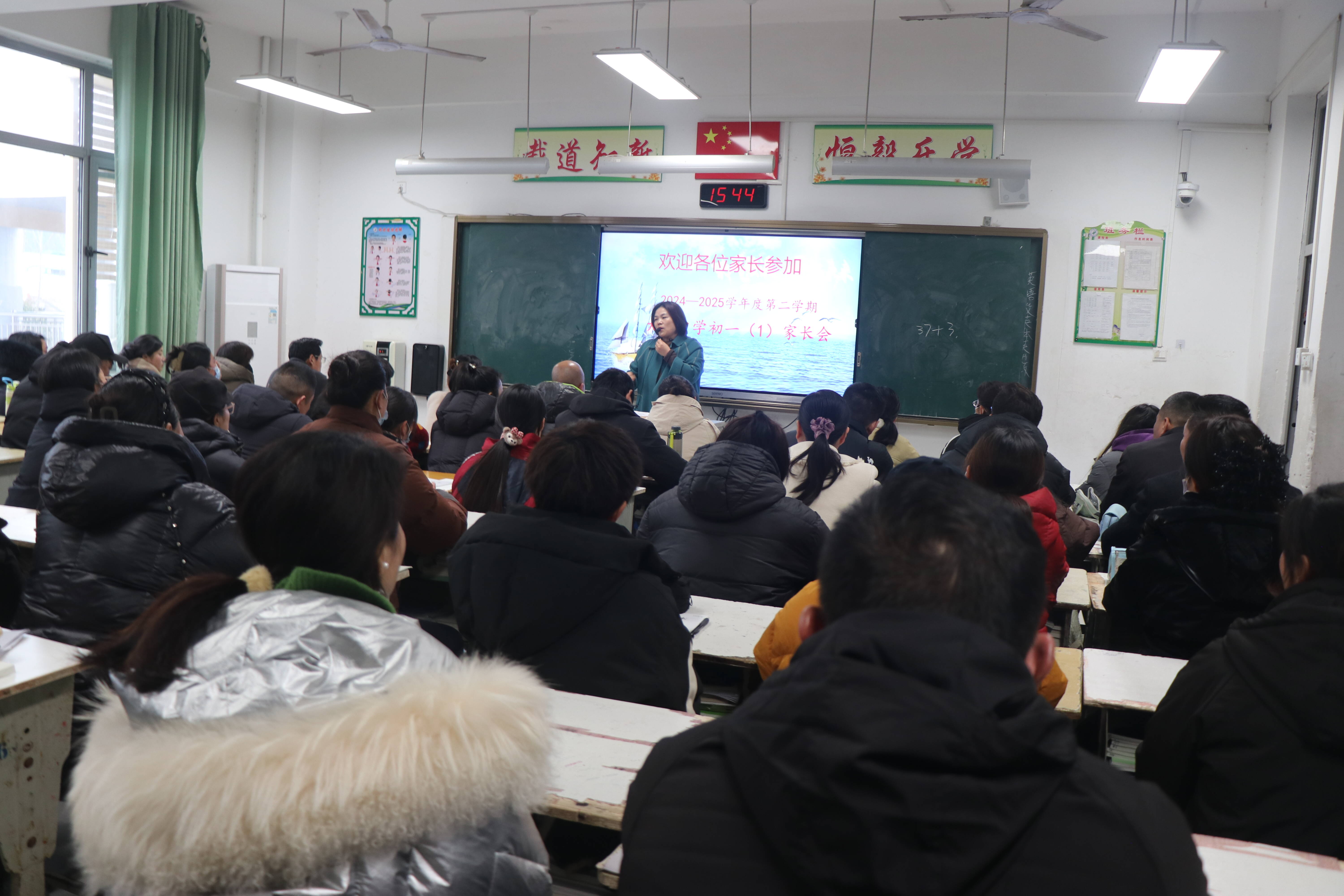七年级的家长会聚焦习惯养成教育。班主任们详细阐述了习惯养成对学生成长的重要性,从日常学习习惯、生活习惯到品德修养,通过分享实例,向家长们传授了培养孩子良好习惯的方法和技巧。家长们认真聆听,不时记录要点,积极与老师互动交流,共同探讨如何帮助孩子在初中阶段打下坚实基础。