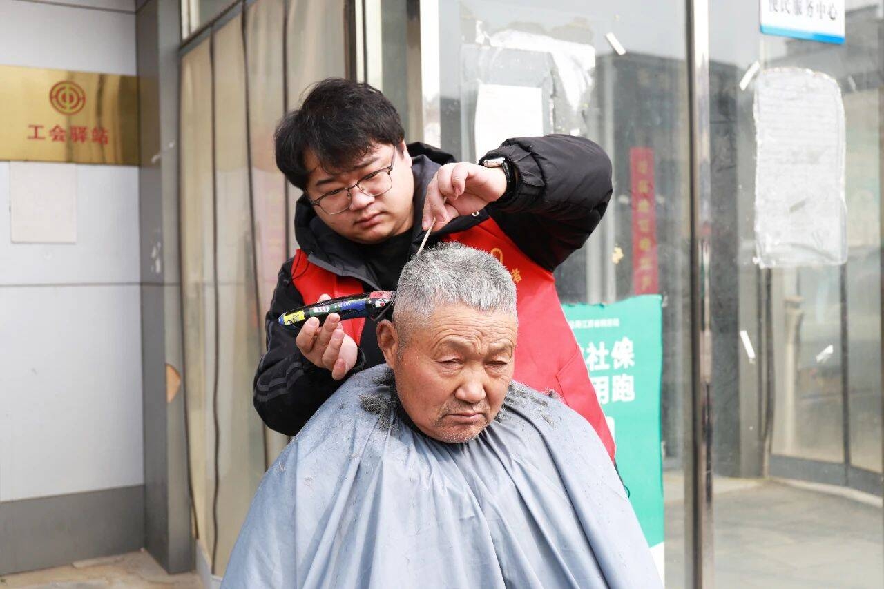 “我刚好来便民服务中心办事,看见门口有活动,就趁排队时间,来到门口顺便免费理个发,这个活动开展的好呀!”正在理发的赵大爷说道。