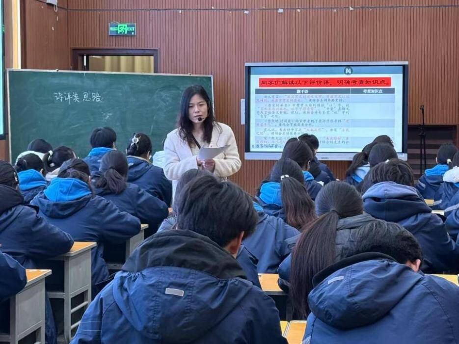 铜山中学张杰老师通过一节《以评解诗 应答有术——古诗词诗评类主观题解答技巧探究》,向高三语文老师分享了诗歌鉴赏专题复习课的授课模式。针对校周测模拟卷中诗歌鉴赏出现的问题,张杰老师制定了以高考为例题引导,训练强化,“我来出题”的上课模式;针对学生审题不准,答题不清的问题,采取了有效的训练和强化。课堂中张杰老师依据高考蓝皮书解读了高考命题特点,向学生传达了教考衔接的理念,让学生明白了这类试题创新的呈现方式。并在讨论与练习的过程中总结了解题思路,规范了答题步骤,有效且高效。