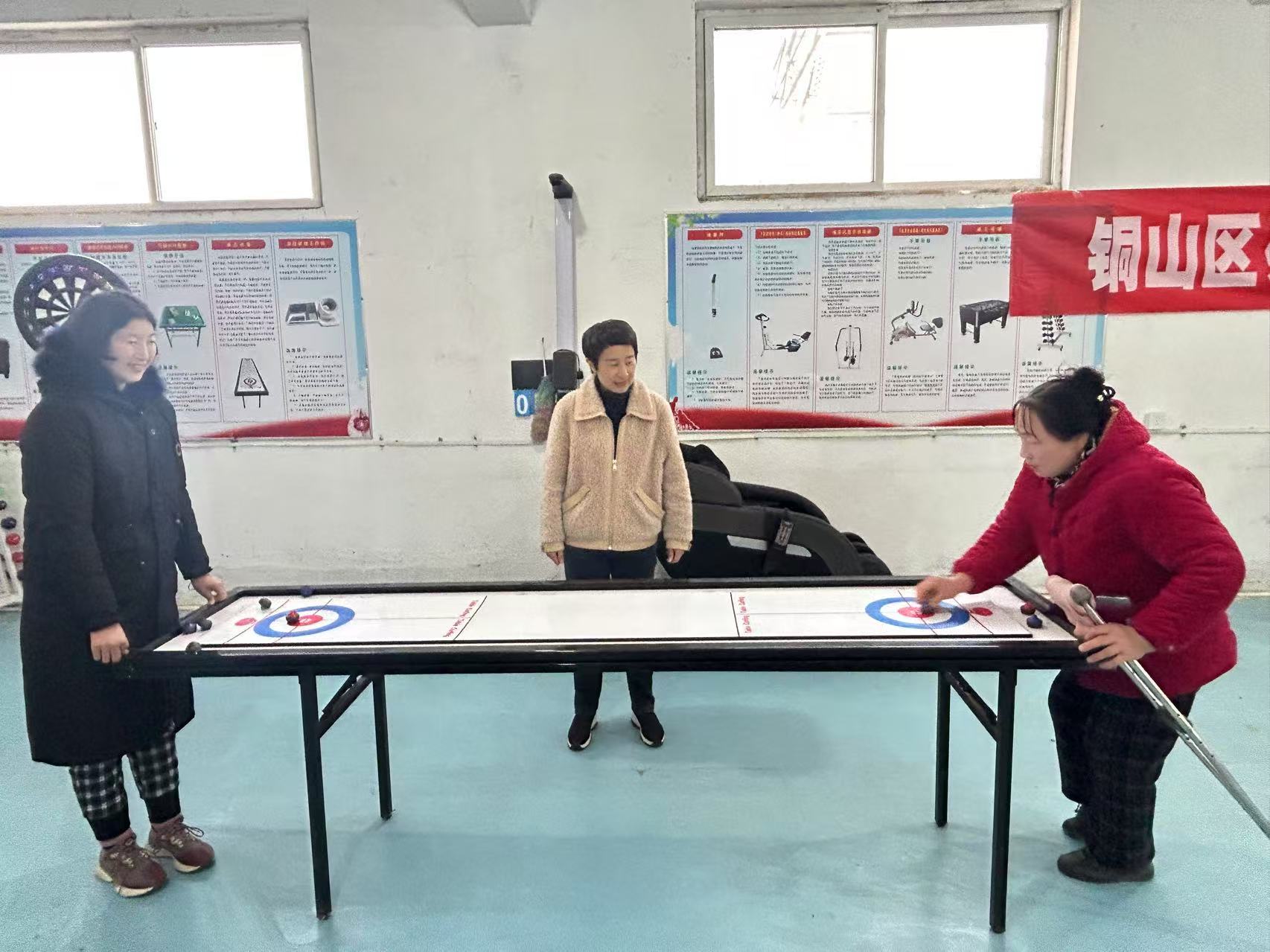 在乒乓球和羽毛球赛场,选手们挥舞着球拍,小小的球在空中来回穿梭,划出一道道美丽的弧线,精湛的球技赢得了现场观众的阵阵喝彩。飞镖和桌上冰壶区域,参赛者们全神贯注,屏气敛息,精准地投出飞镖、推动冰壶,每一次出手都凝聚着他们的专注与努力。踢毽子比赛中,五彩的毽子在选手们的脚尖上下翻飞,大家脸上洋溢着欢快的笑容,现场充满了欢声笑语。