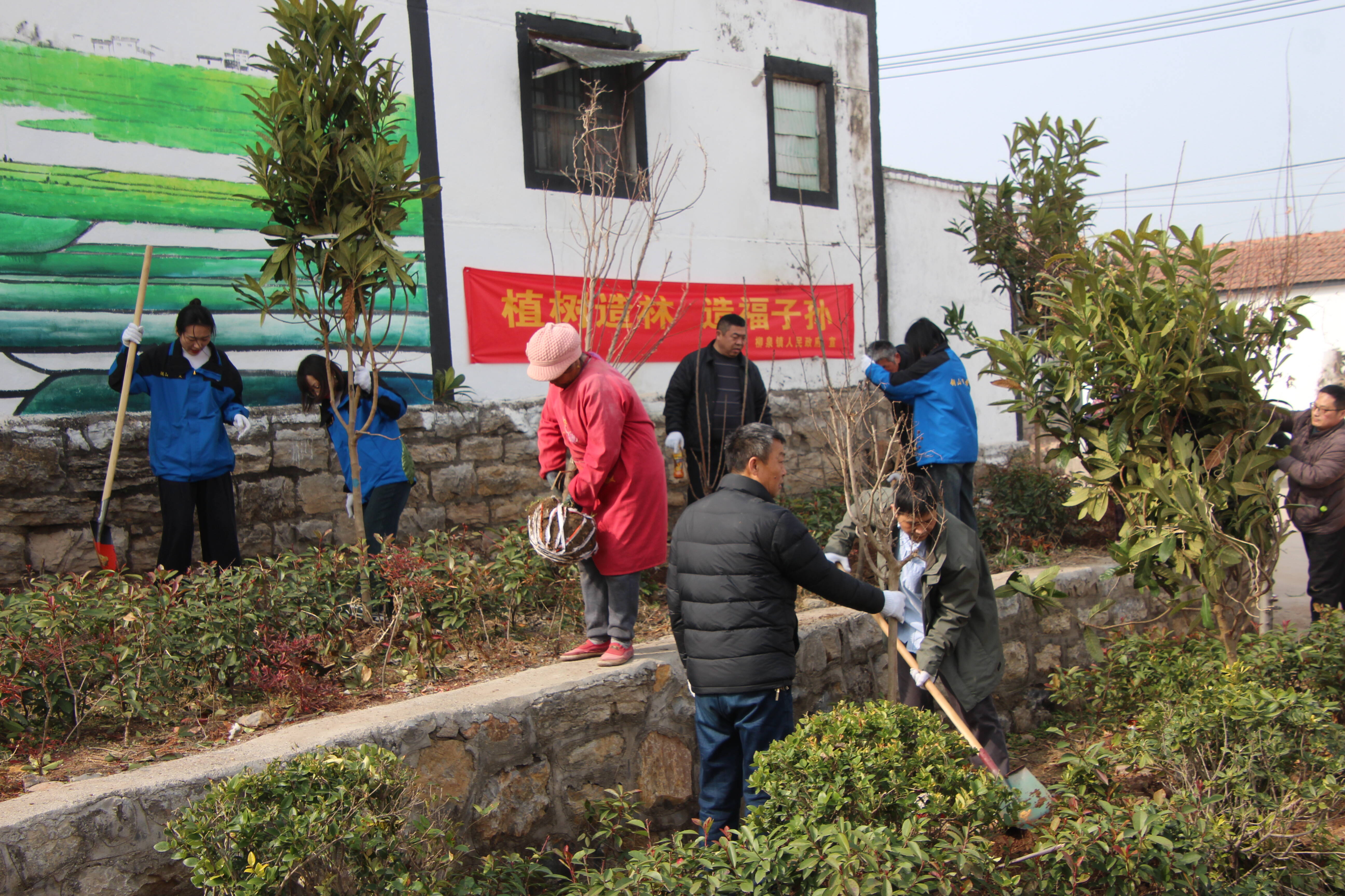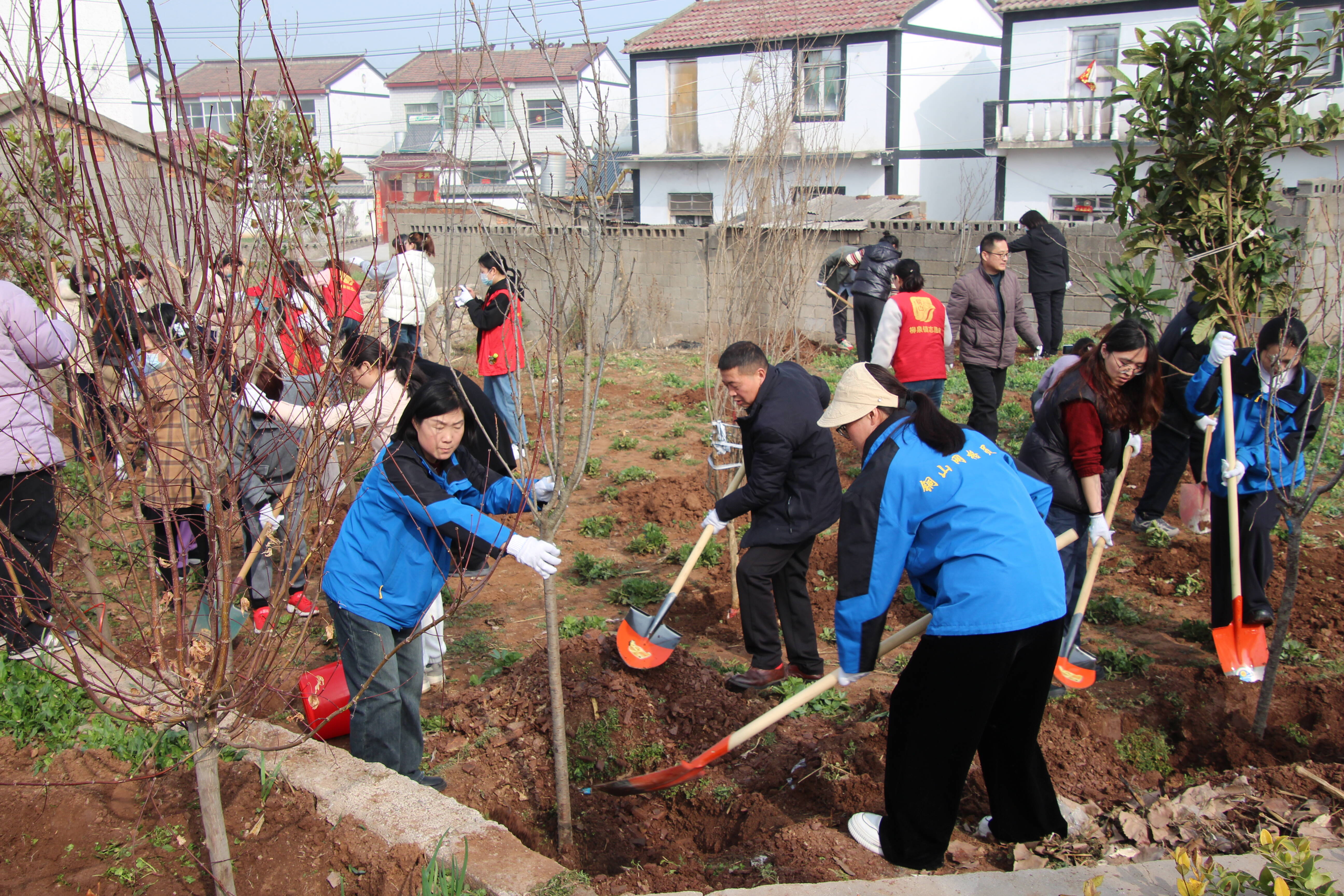 柳泉镇机关全体党员干部、镇村志愿者、网格员同民建徐州市委会青年委员会成员100余人赴西马村、周山头植树区栽植紫叶李、紫薇、樱花、樱桃、红梅、红枫、石榴、枇杷、广玉兰、梨树等10多个树种1000多棵。植树现场人头攒动,旗帜飘扬,标语醒目,到处是热火朝天,辛勤忙碌的身影。