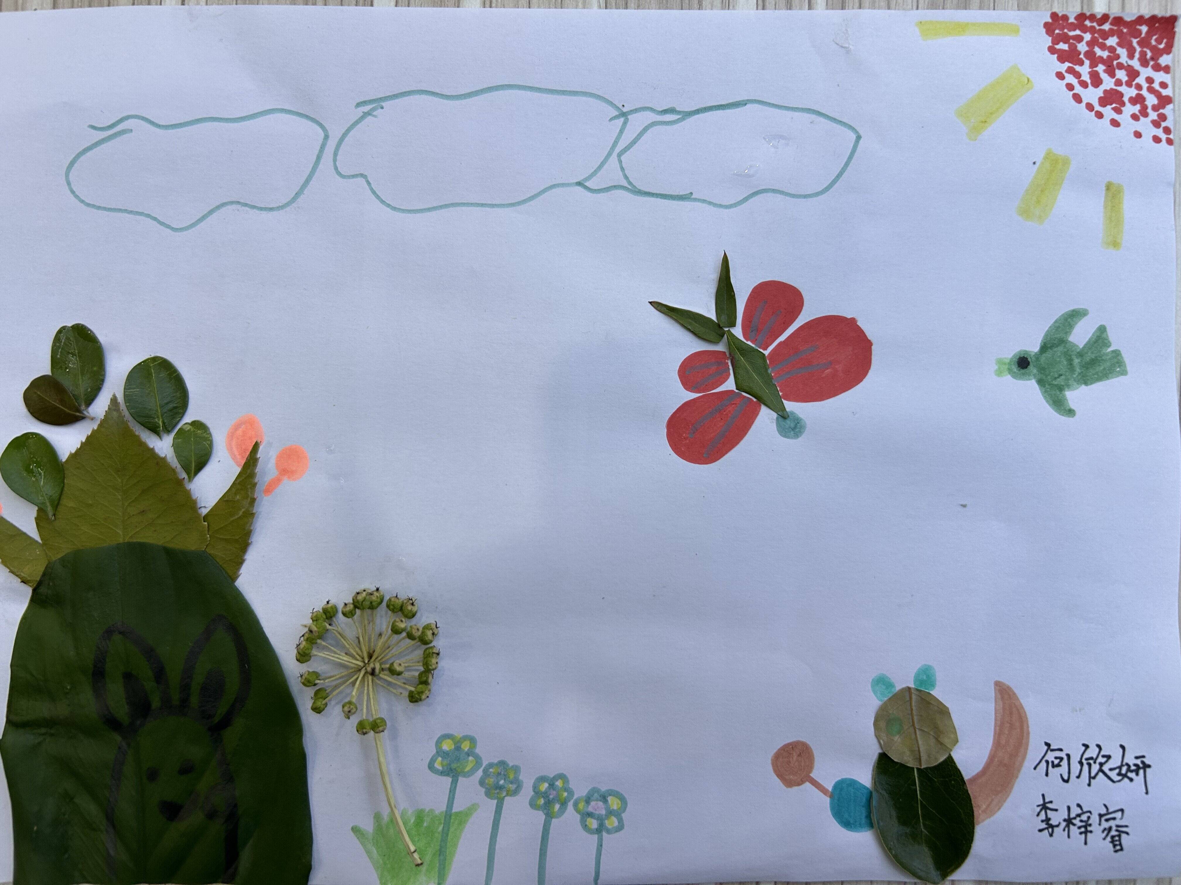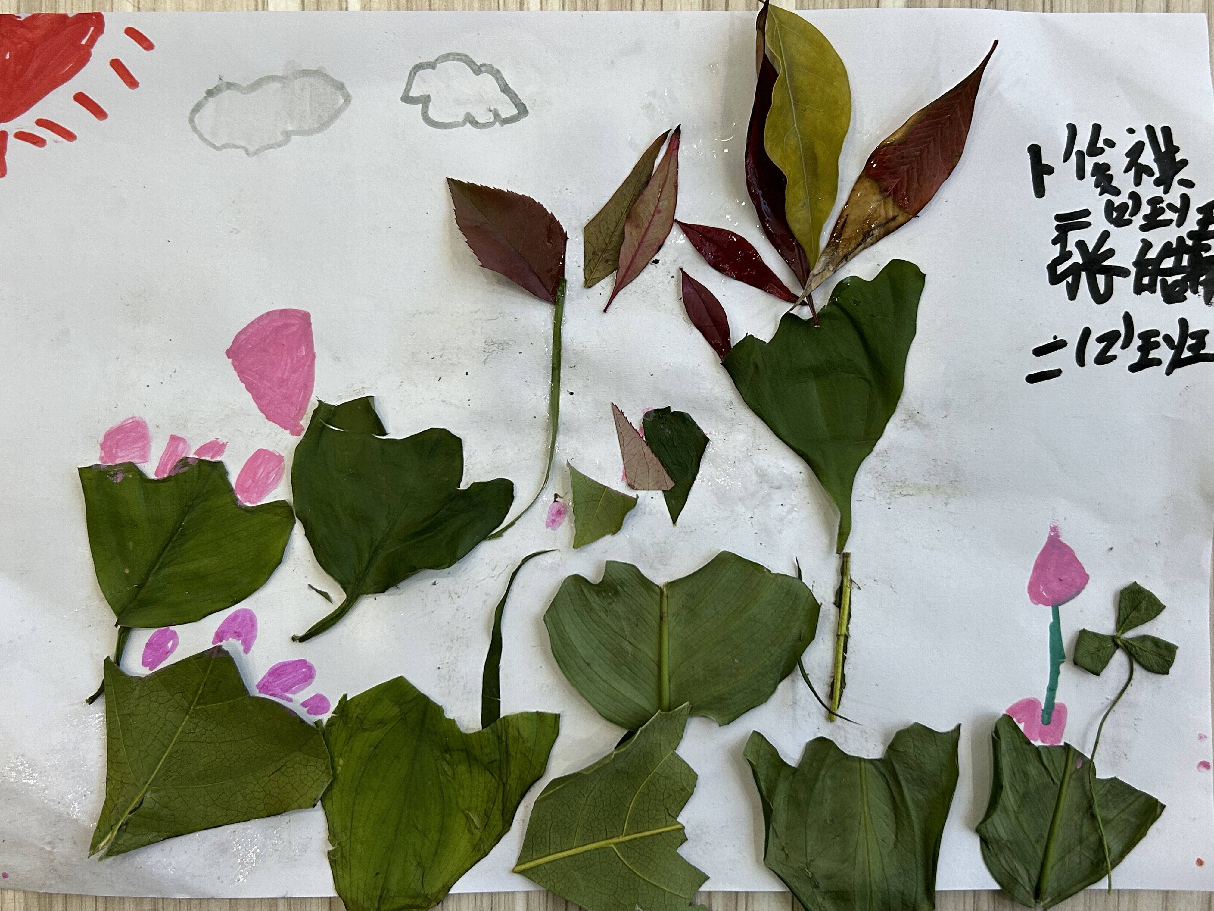在一双双稚嫩小手的摆弄下,普通的树叶变成了一幅幅充满童趣与创意的作品,每一幅画都饱含着同学们对春天的独特理解。
