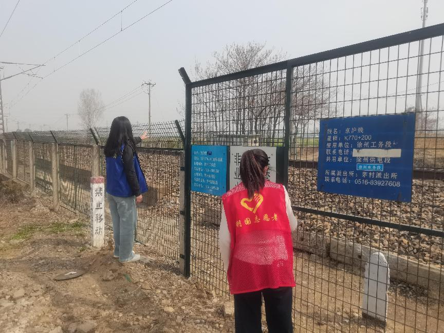 为保障辖区铁路安全运行及周边居民人身、财产安全,有效预防破坏铁路设备设施等违法活动。近期,利国镇寄堡村志愿服务站组织志愿者、网格员对辖区铁路沿线进行巡查,切实做好爱路护路工作。
