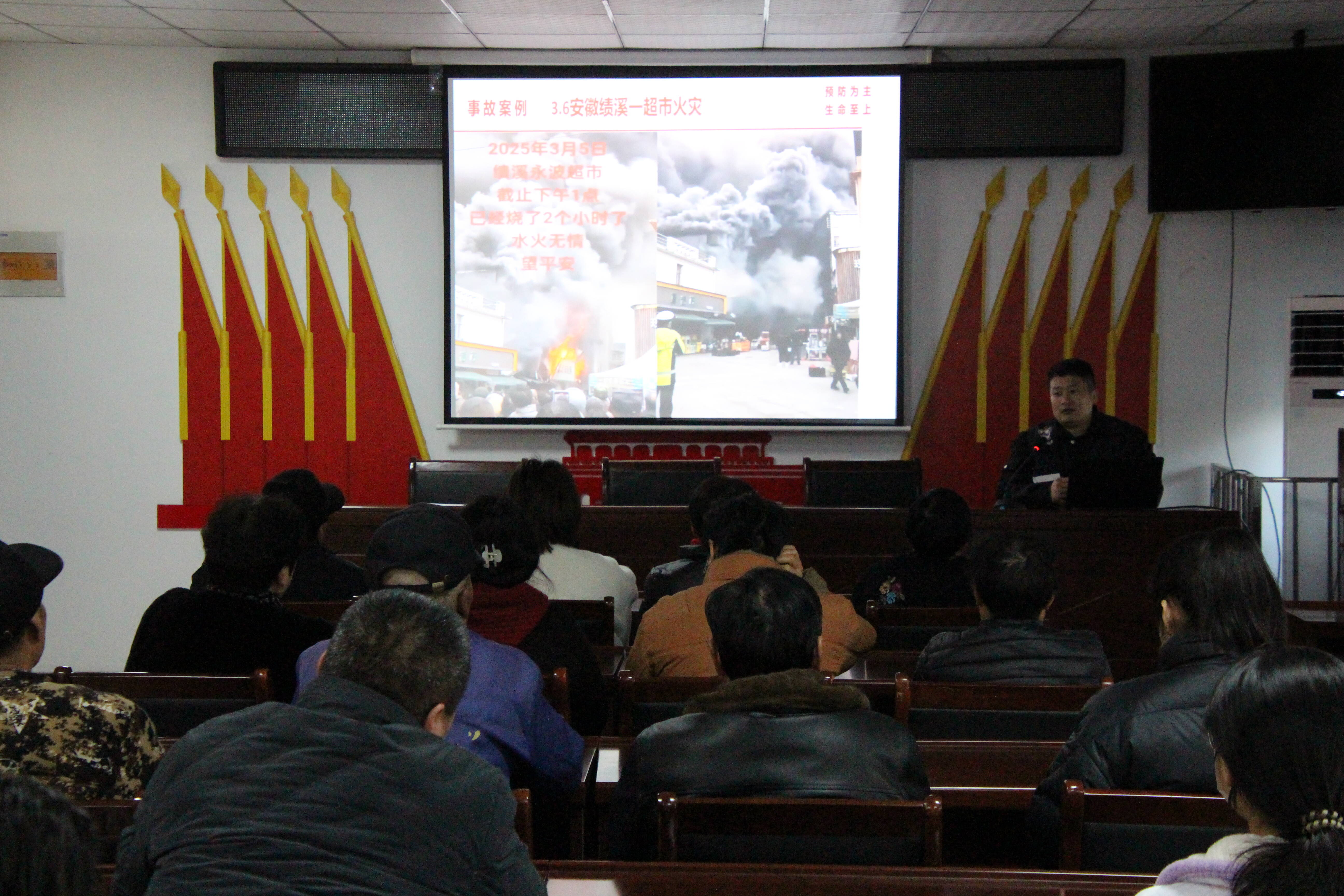 杜明凯教员首先播放 2025 年开年以来部分地区发生的火灾事故惨痛案例和“三合一”场所、家庭、超市等存在安全隐患的实录视频,重点讲解什么是“三合一”场所、穿管布设电线、安装和使用插座、开关等注意事项、如何使用燃气、给电动车充电的正确方法、发生火灾如何疏散逃生、如何预防汽车火灾、灭火器等消防工具的使用方法、消防安全工作的意义等。特别提醒燃气用户严格落实主体责任、加强日常安全隐患自查、谨防各类安全事故的发生。围绕“人人讲安全,个个会应急”主题,现场组织参训人员收看市安委办、消防办社会面小场所安全培训线上直播,大家反映从中学到了很多实操技能,对今后做好应急消防安全非常有用。杜明凯教员还将理论和实操紧密结合,带领参训人员进行“紧急灭火”和正确“佩戴护具”等演练,切实做到“详知、用好、有效”。