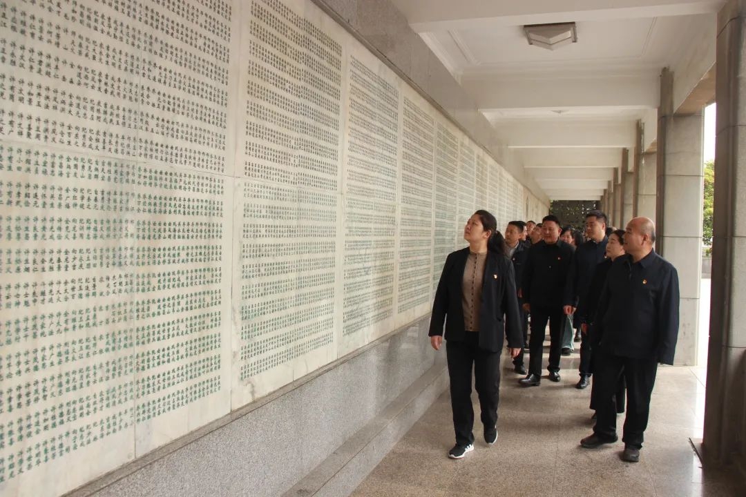 紧接着,大家绕塔一周,观看那千千万万镌刻在墙上的名字,这些名字背后,曾经是一个个鲜活的生命,他们为了新中国,永远留在了最好的年岁里,在此安息。大家认真驻足凝视,心中的敬仰之情油然而生,久久不能平静。