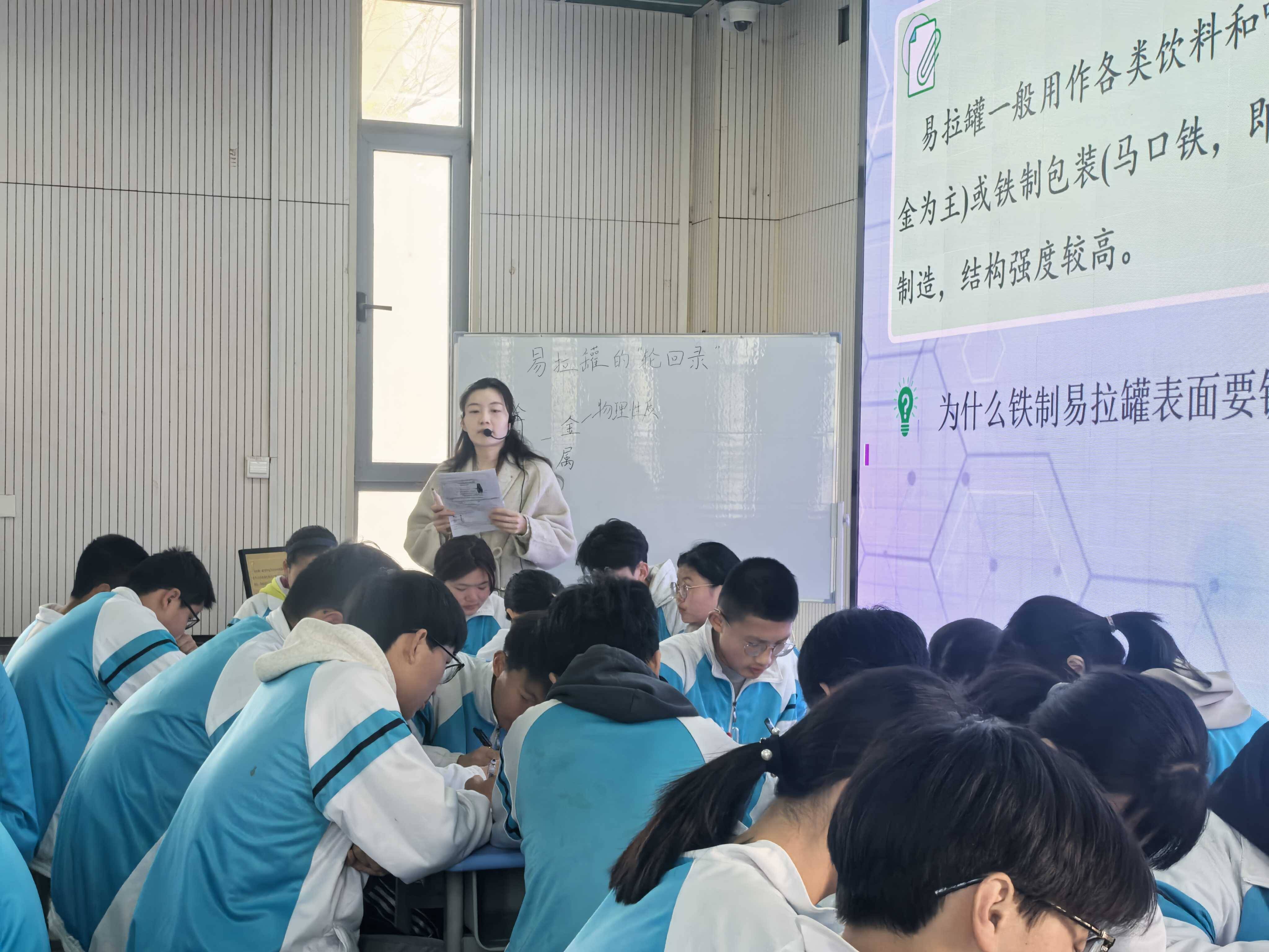 大彭中心中学张晨曦老师在《易拉罐的轮回录——金属与金属资源利用复习》课堂上,巧妙运用小组合作教学法,极大提升了教学效果。课堂伊始,学生们分组初识易拉罐,在交流讨论中初步构建认知。紧接着,各小组分工协作,有的负责查阅资料设计实验,验证易拉罐含有金属;有的则记录讨论要点,为后续阐述观点做准备。课程末尾,各小组还围绕中考真题展开复习,在合作中强化对金属与金属资源利用知识的掌握,为迎接中考夯实基础。